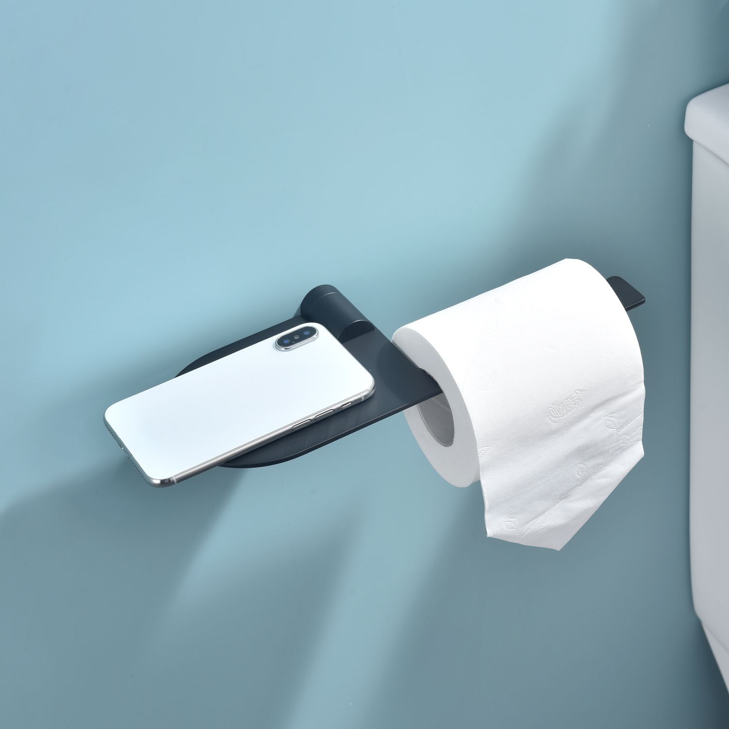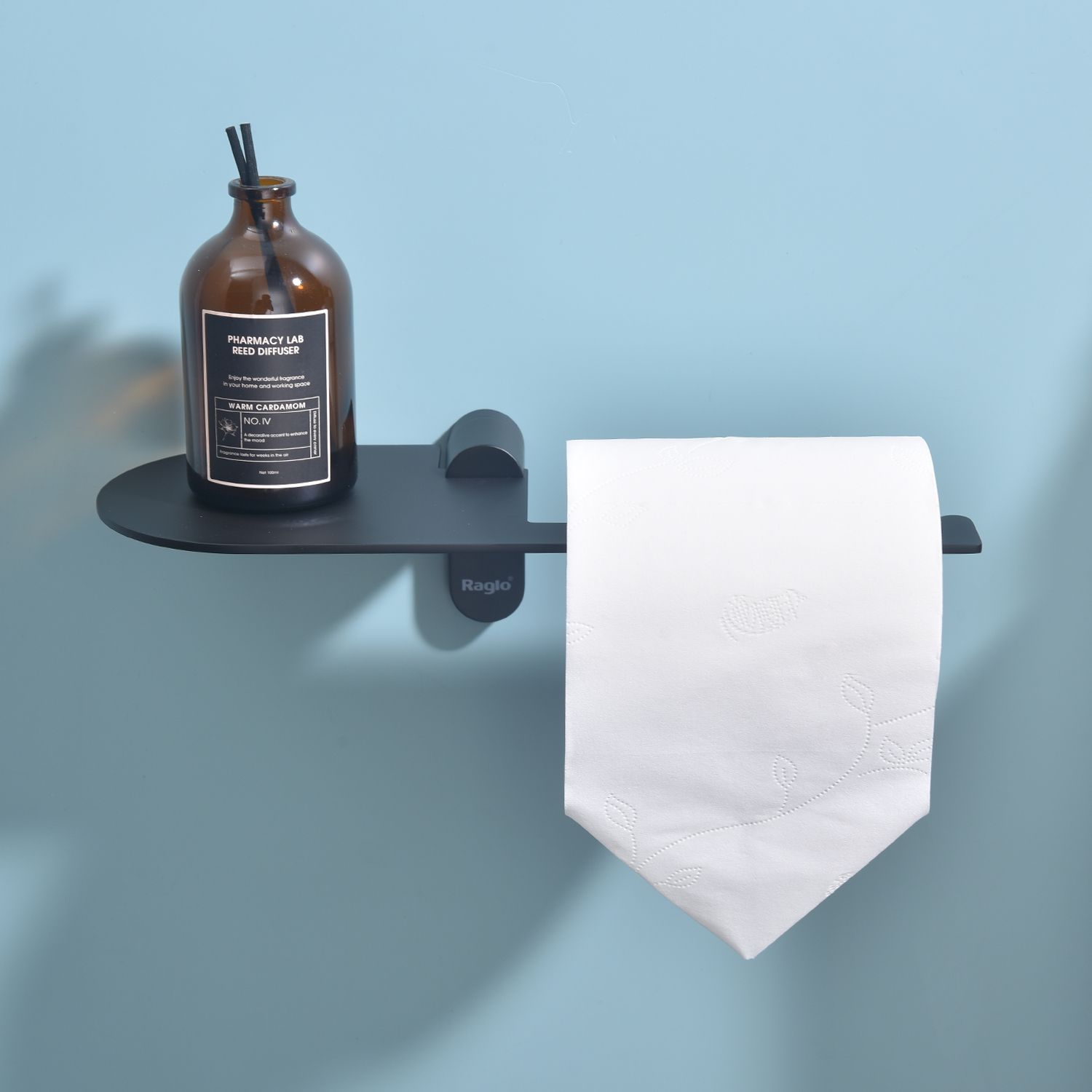 Бумагодержатель с полочкой для телефона Raglo черный R300.03.06