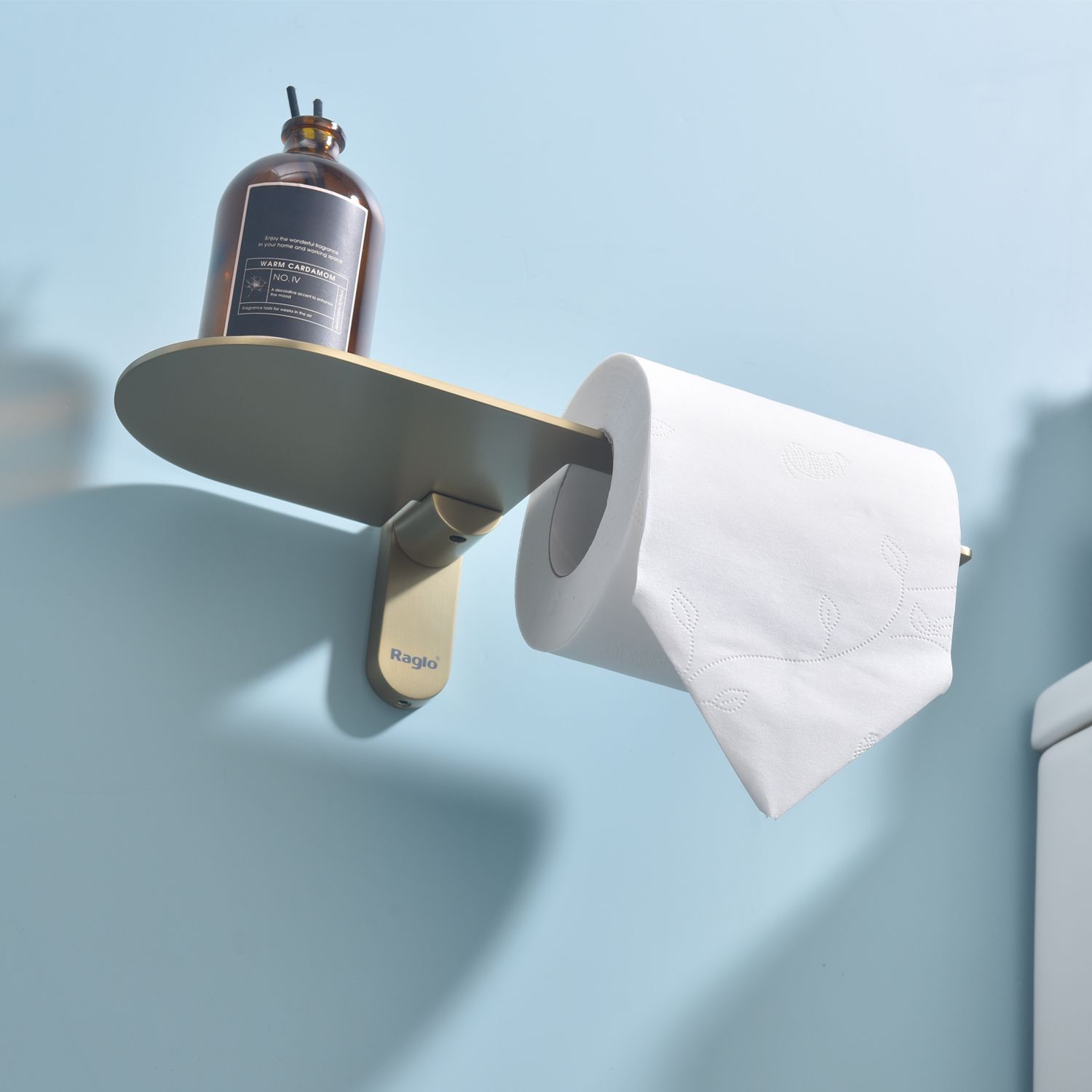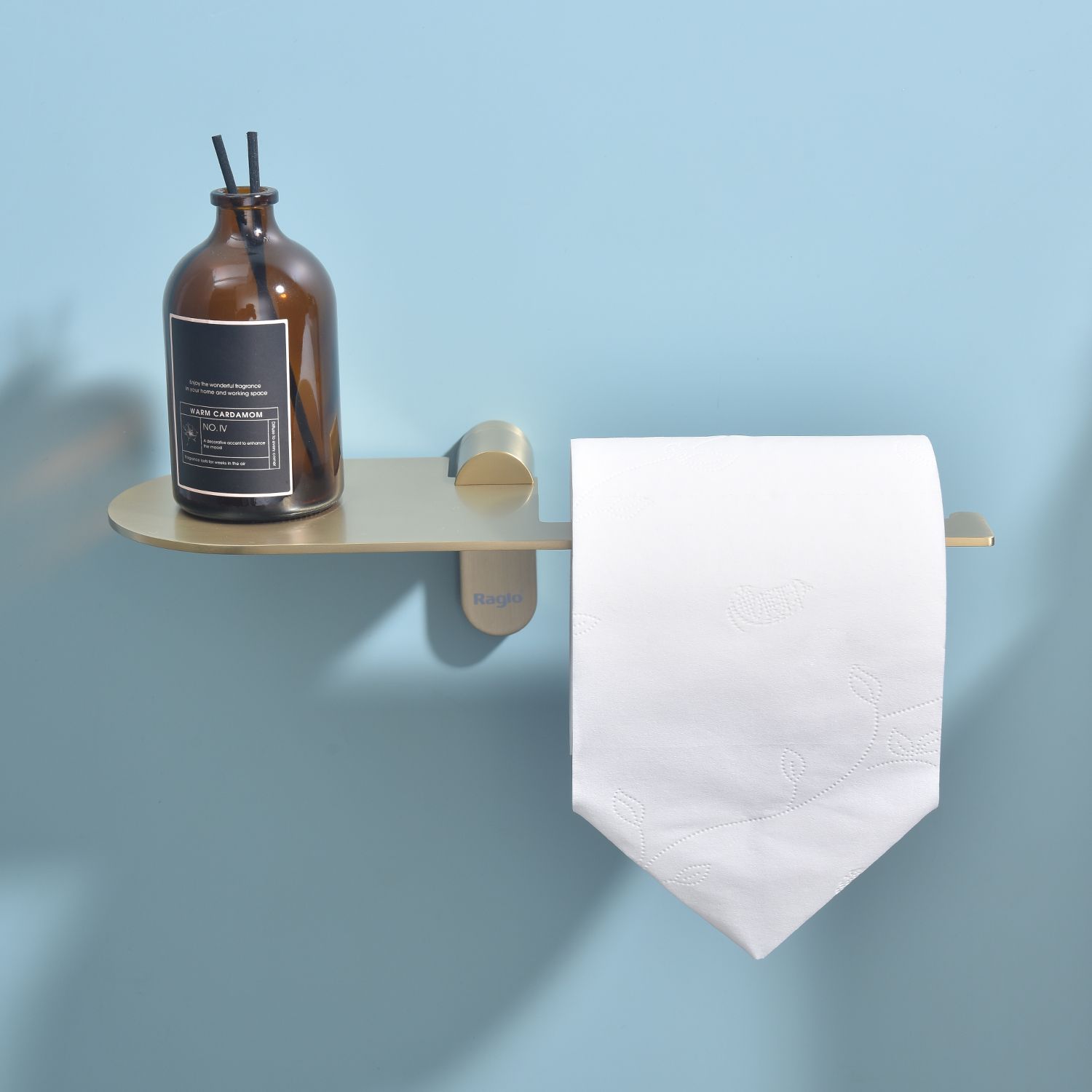 Бумагодержатель с полочкой для телефона Raglo сатин золото R300.03.03