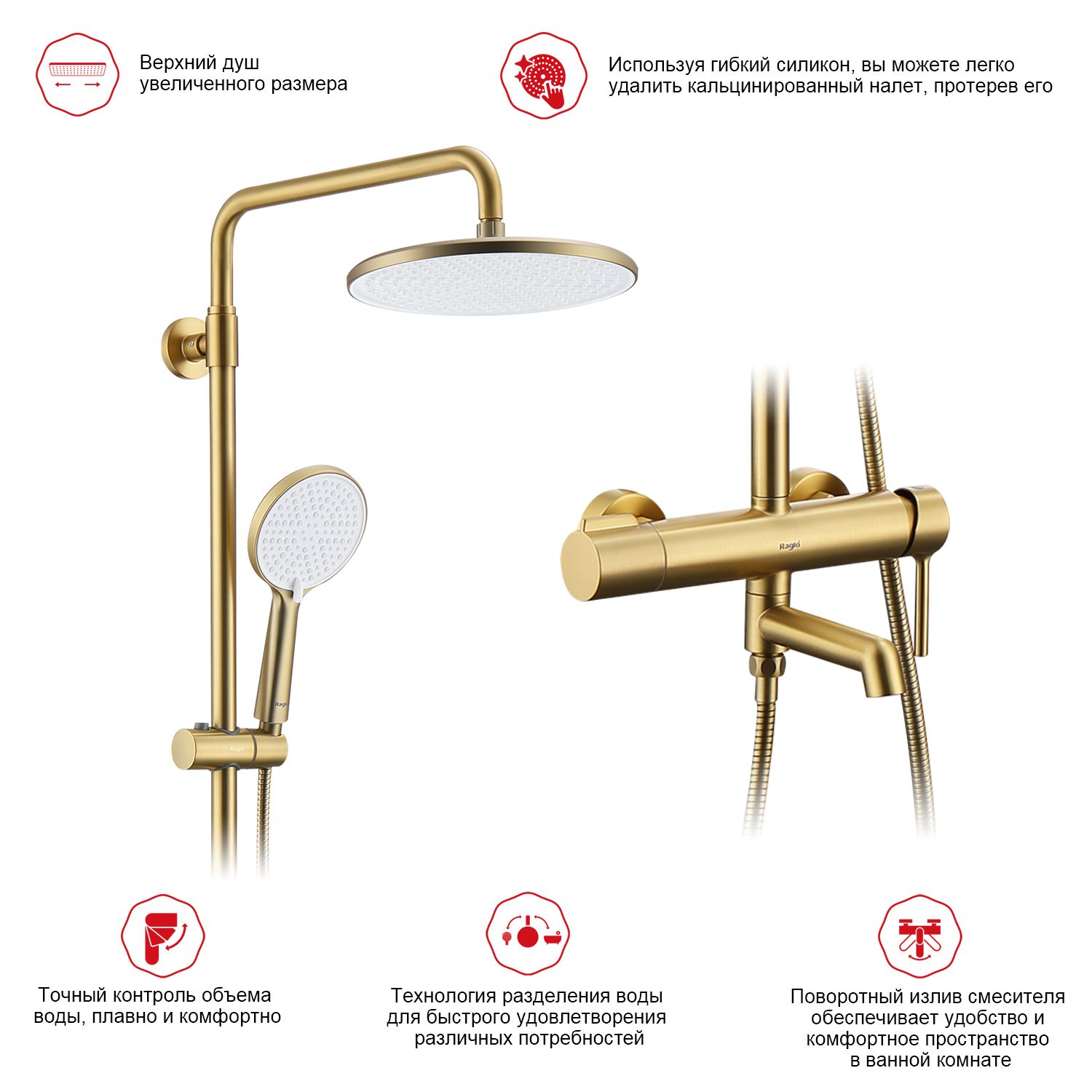 Душевая система Raglo сатин золото R20.24.03