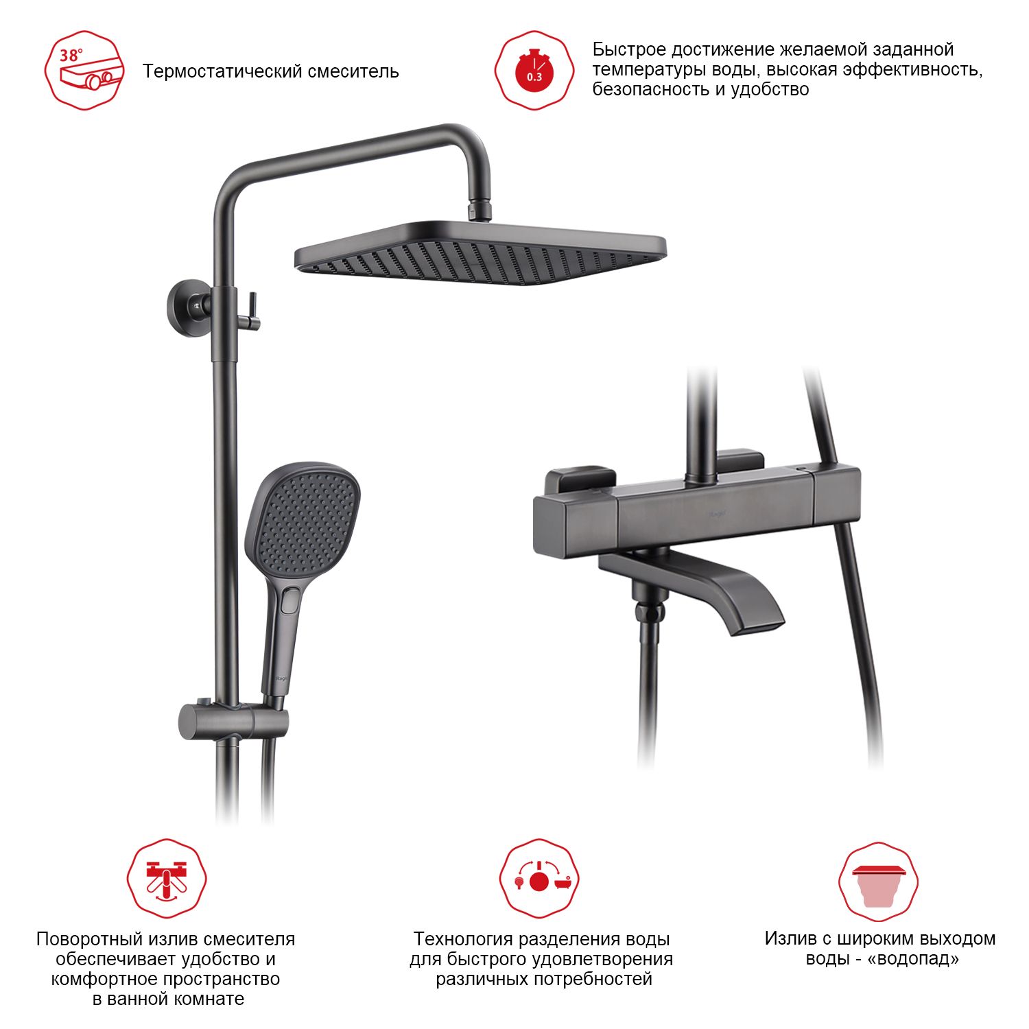 Встраиваемый смеситель для ванны с 3-функциями Raglo черный R20.27.06