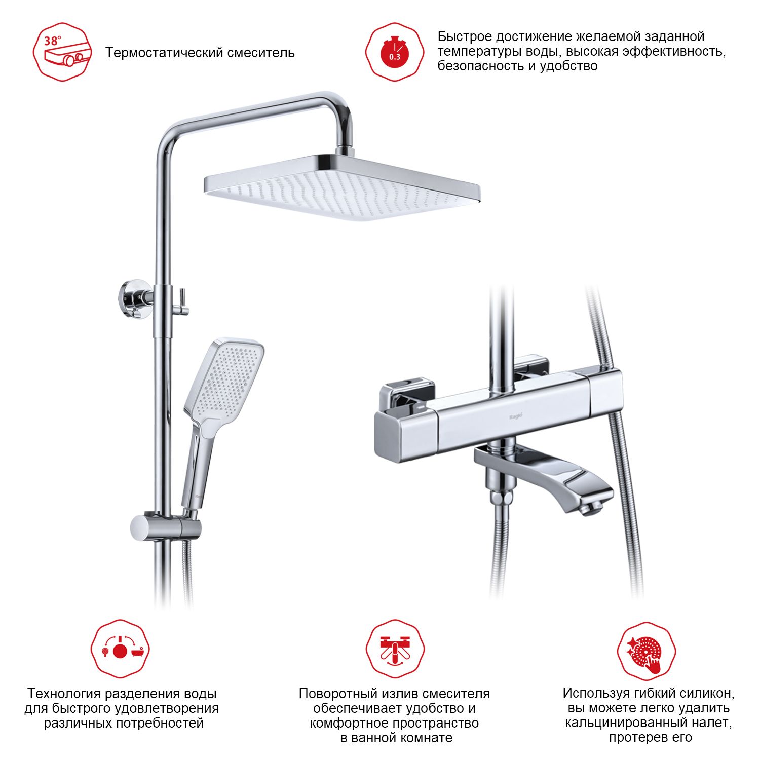 Душевая система с термостатом Raglo сатин золото R01.26.03