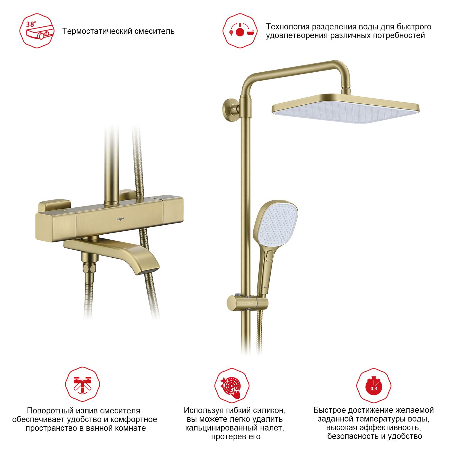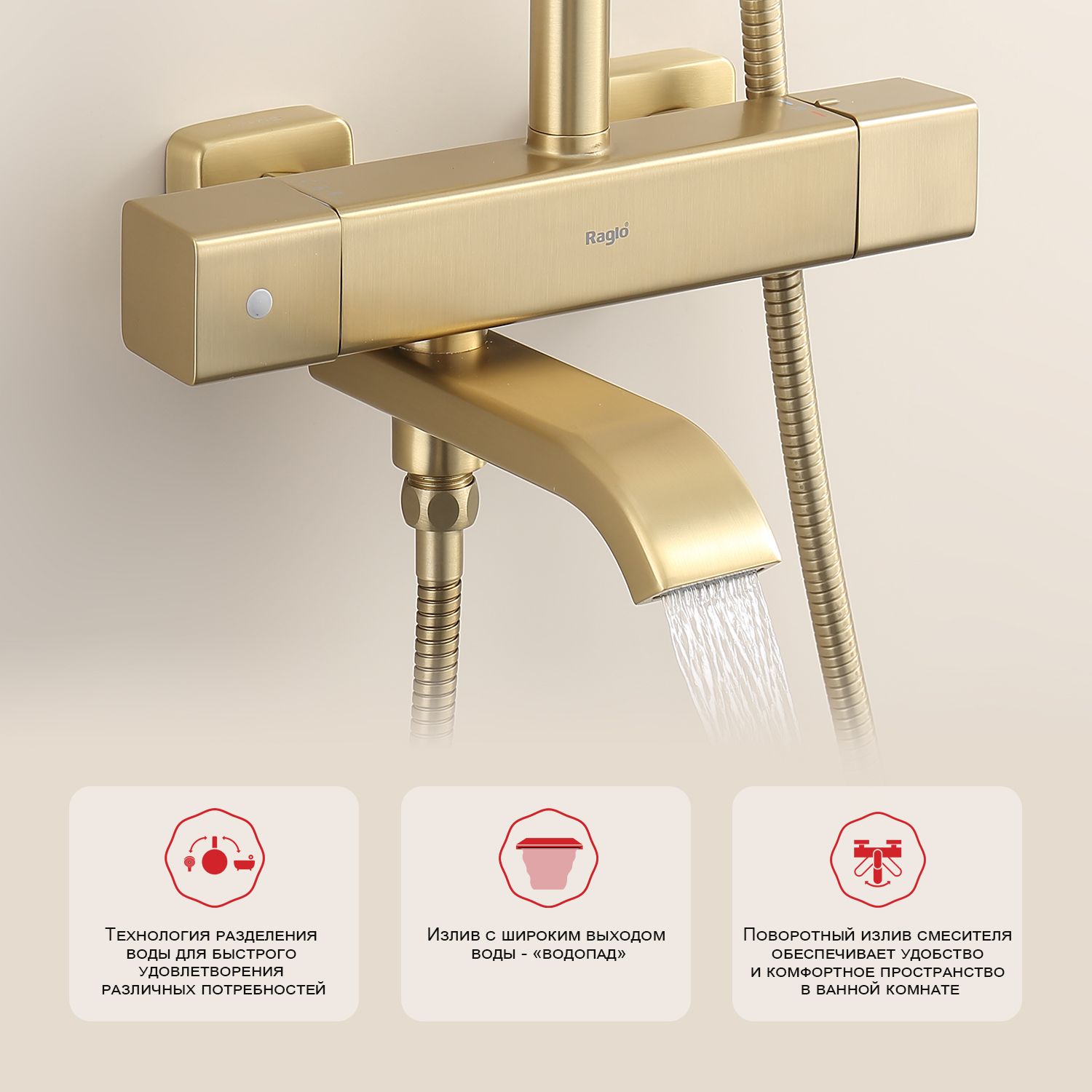Душевая система с термостатом Raglo сатин золото R22.26.03