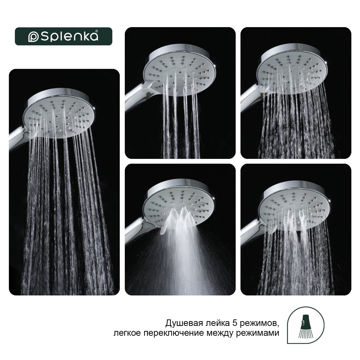 Лейка для душа 5-режимов Splenka хром S450.04