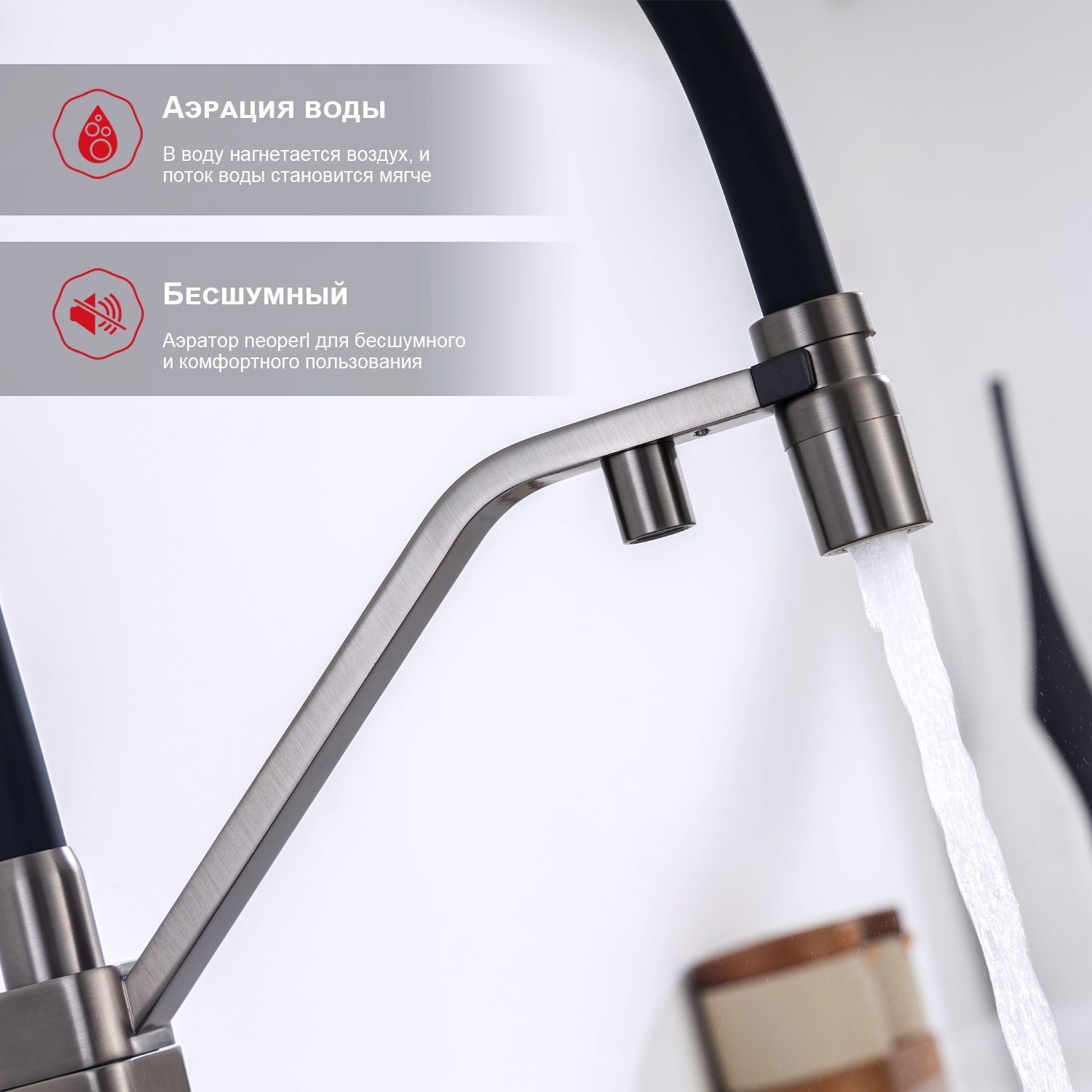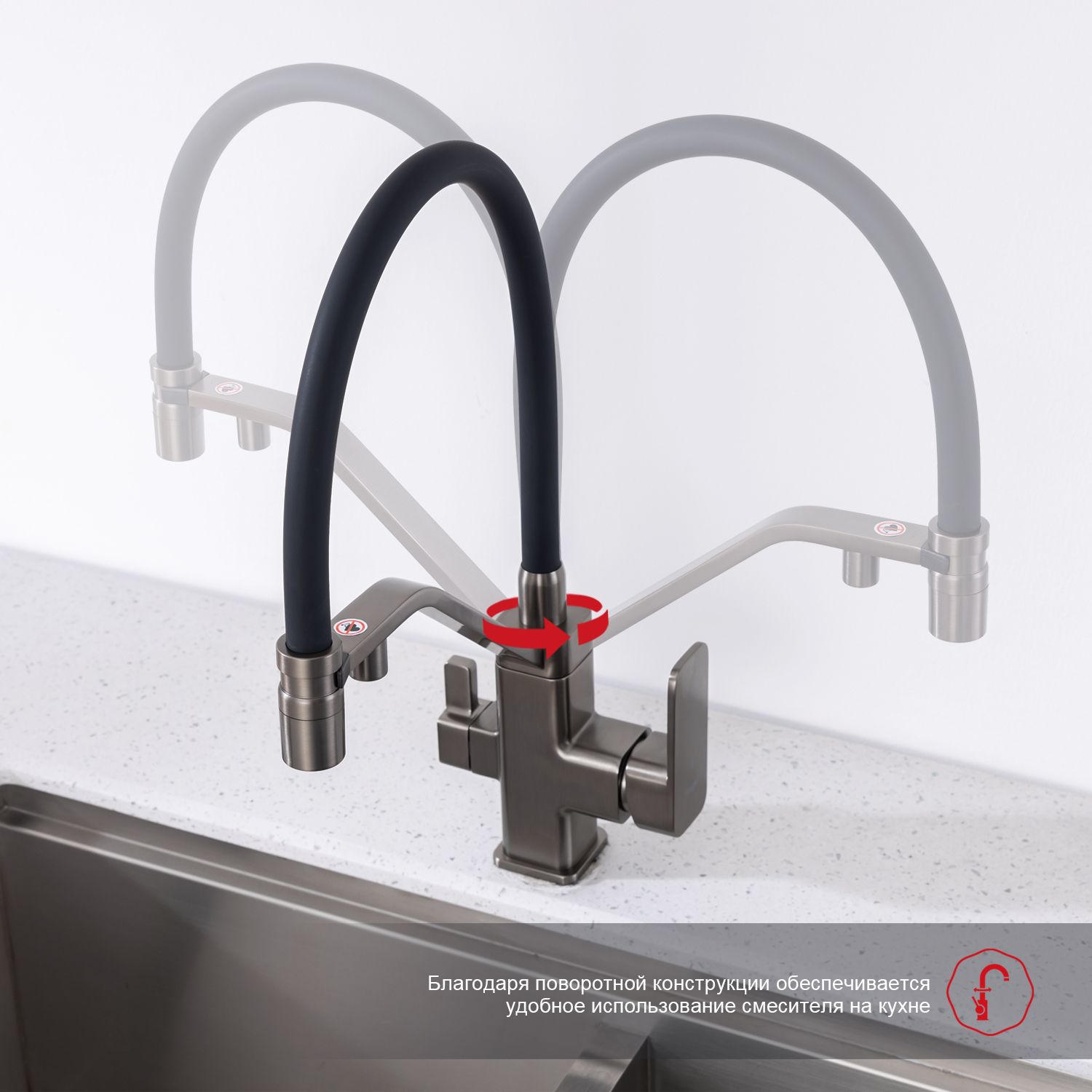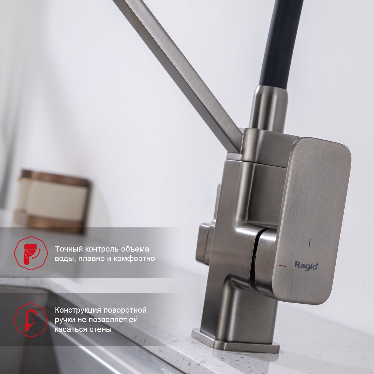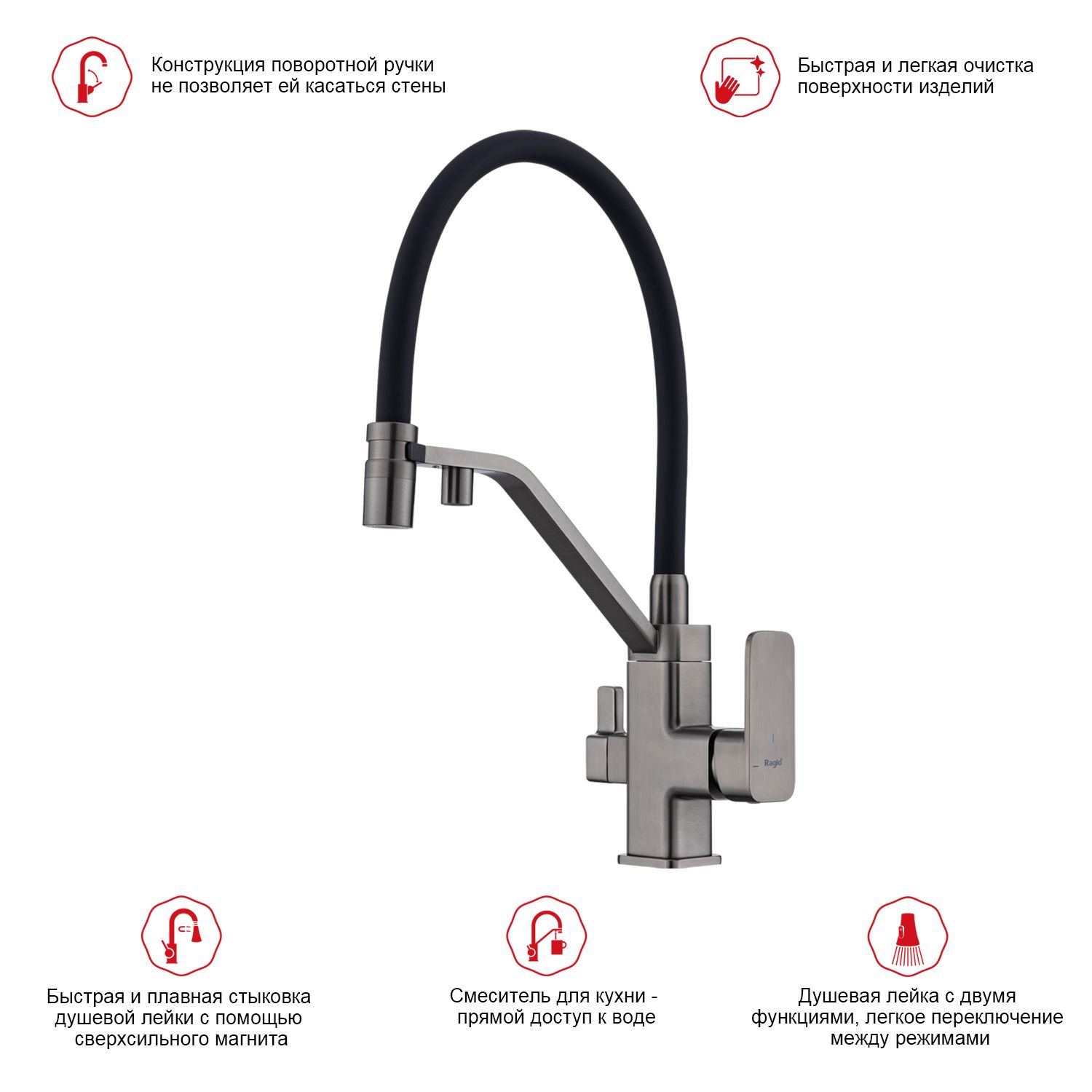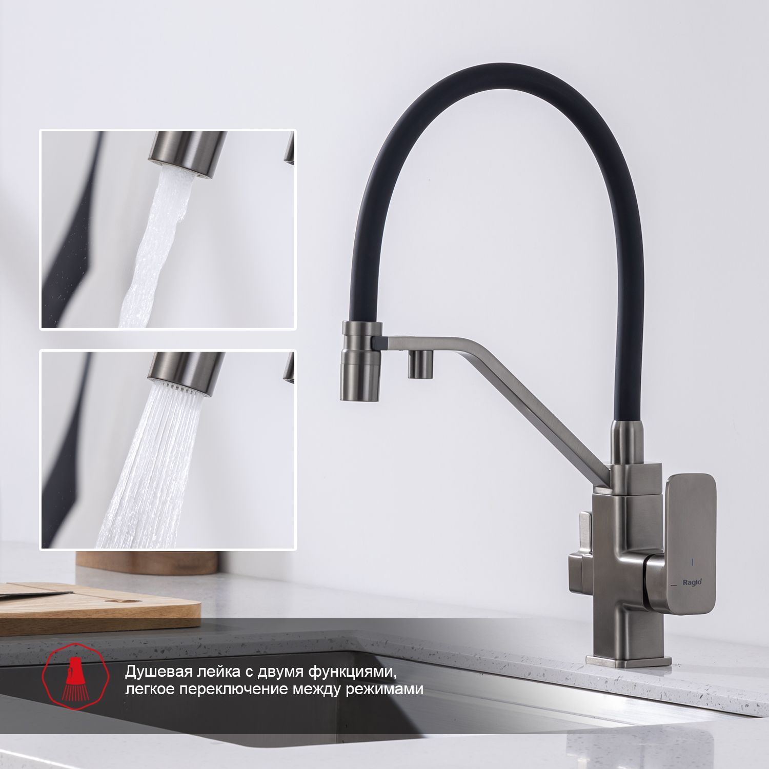 Смеситель для кухни с подключением к фильтру питьевой воды Raglo графит R85.62.09