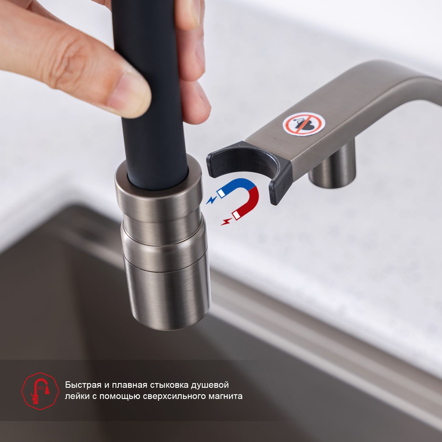 Смеситель для кухни со съемным изливом на магните Raglo сатин R86.41.05