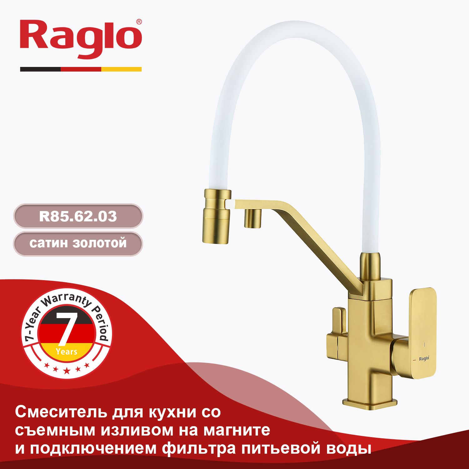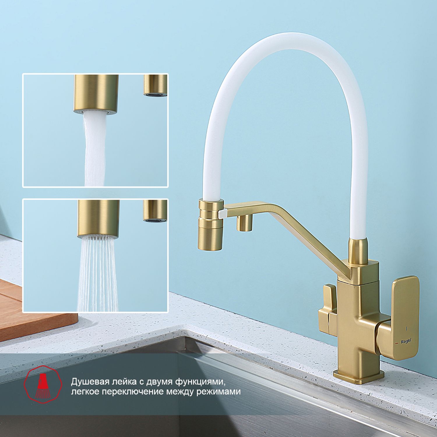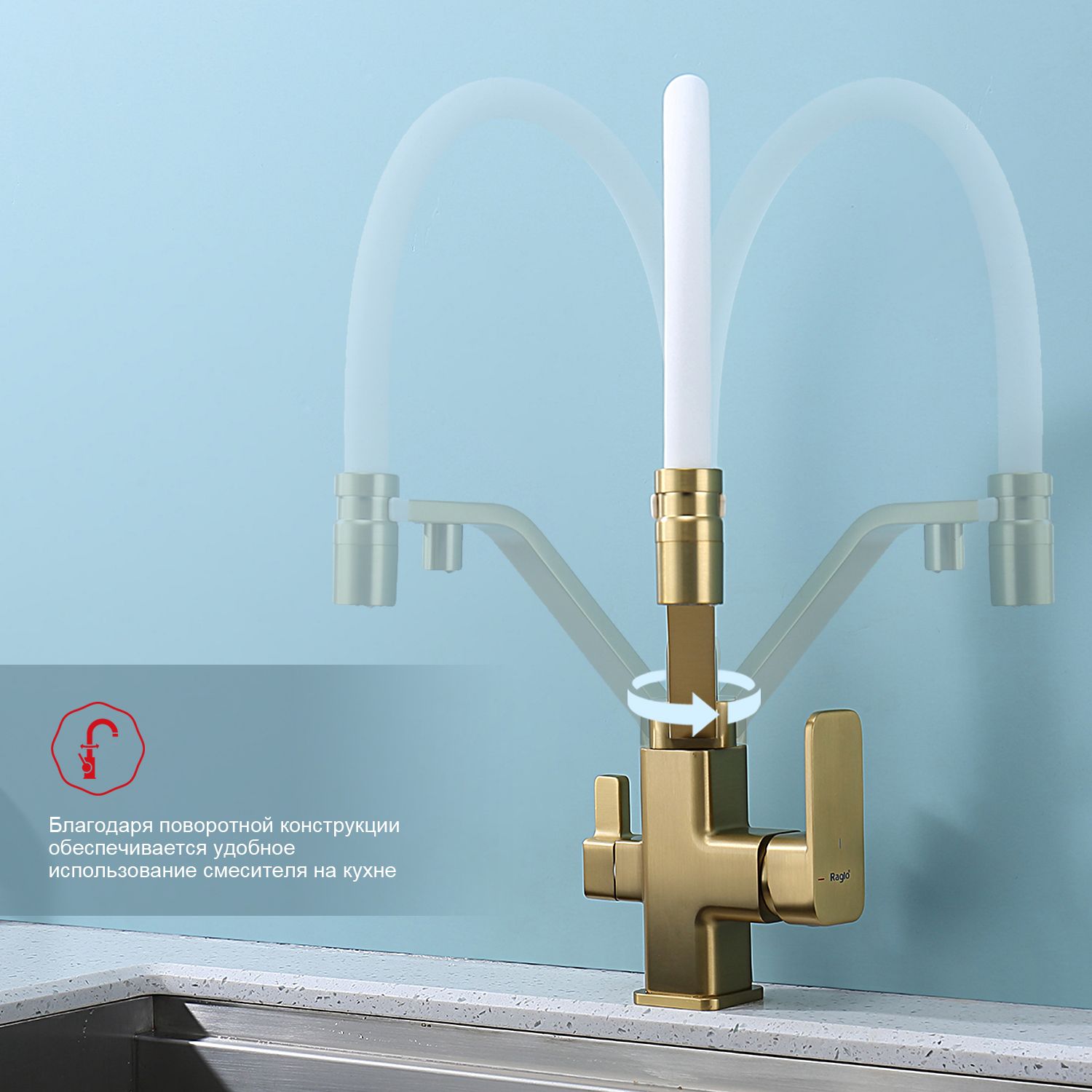 Смеситель для кухни с подключением к фильтру питьевой воды Raglo сатин золото R85.62.03