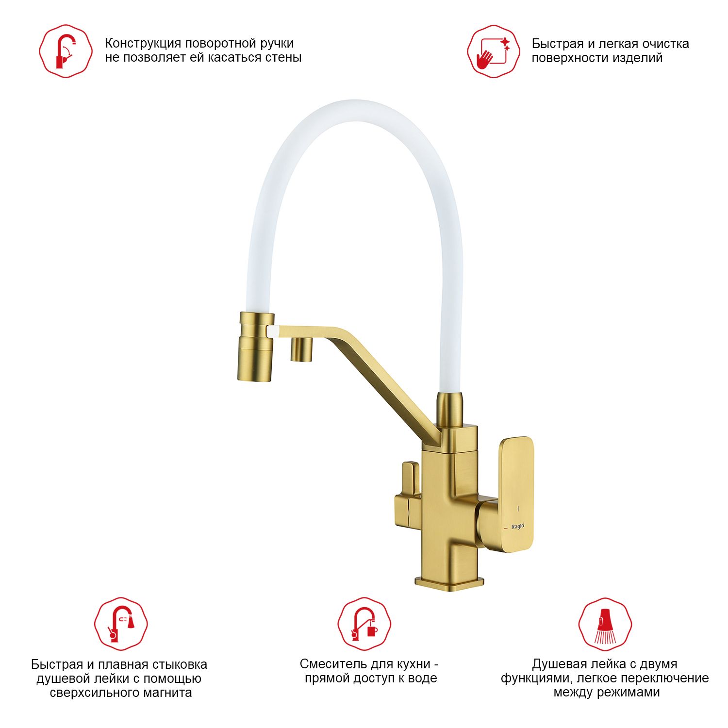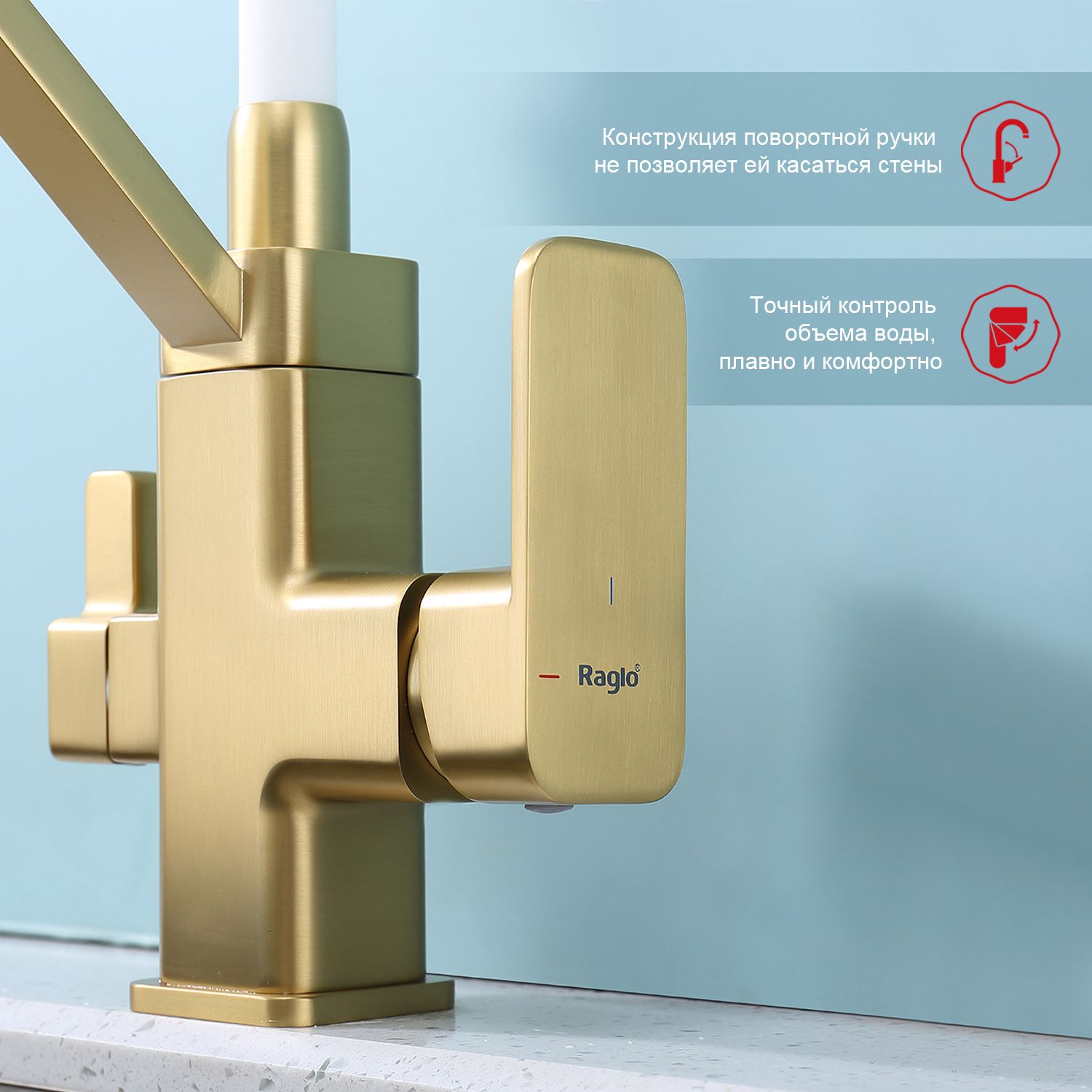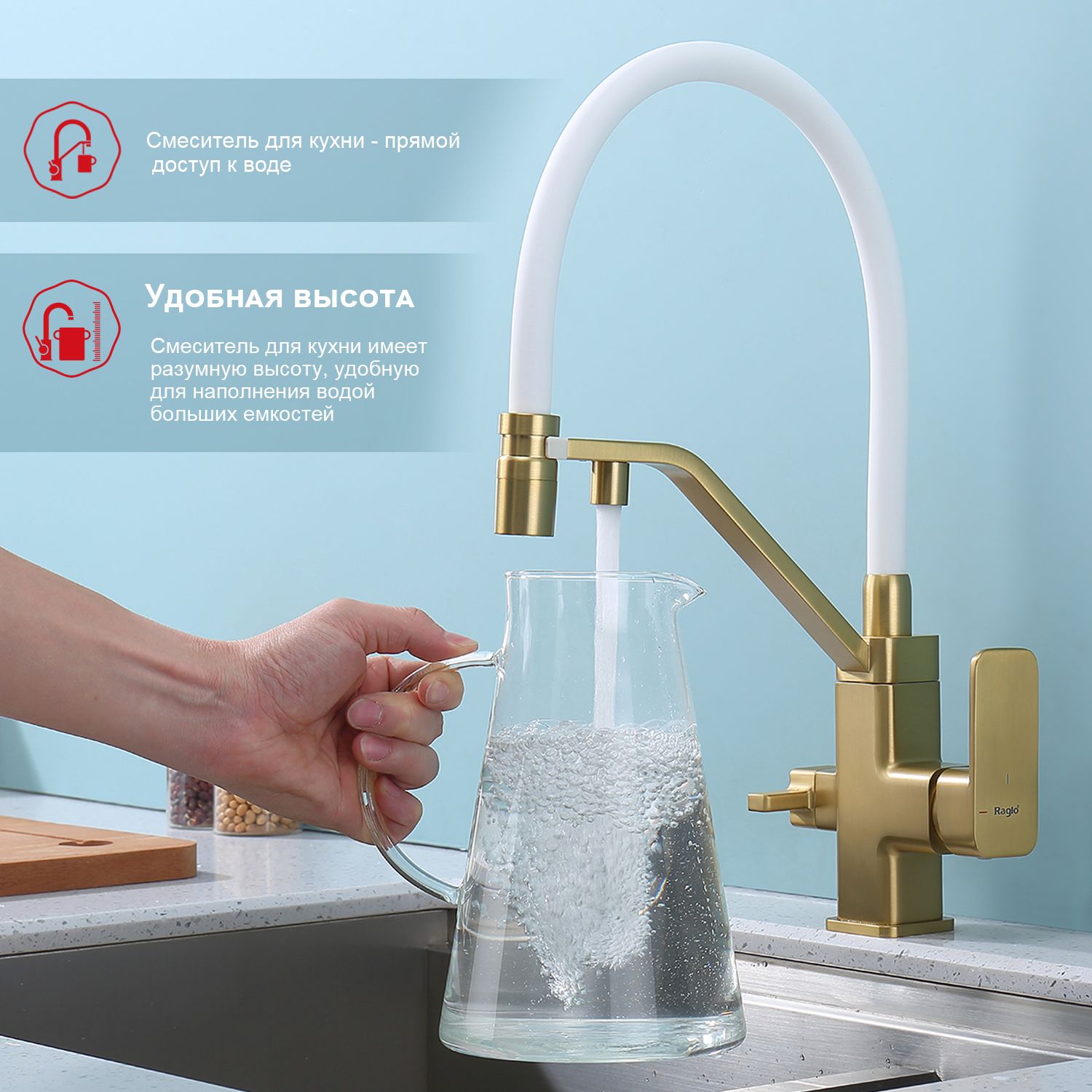 Смеситель для кухни с подключением к фильтру питьевой воды Raglo сатин золото R85.62.03