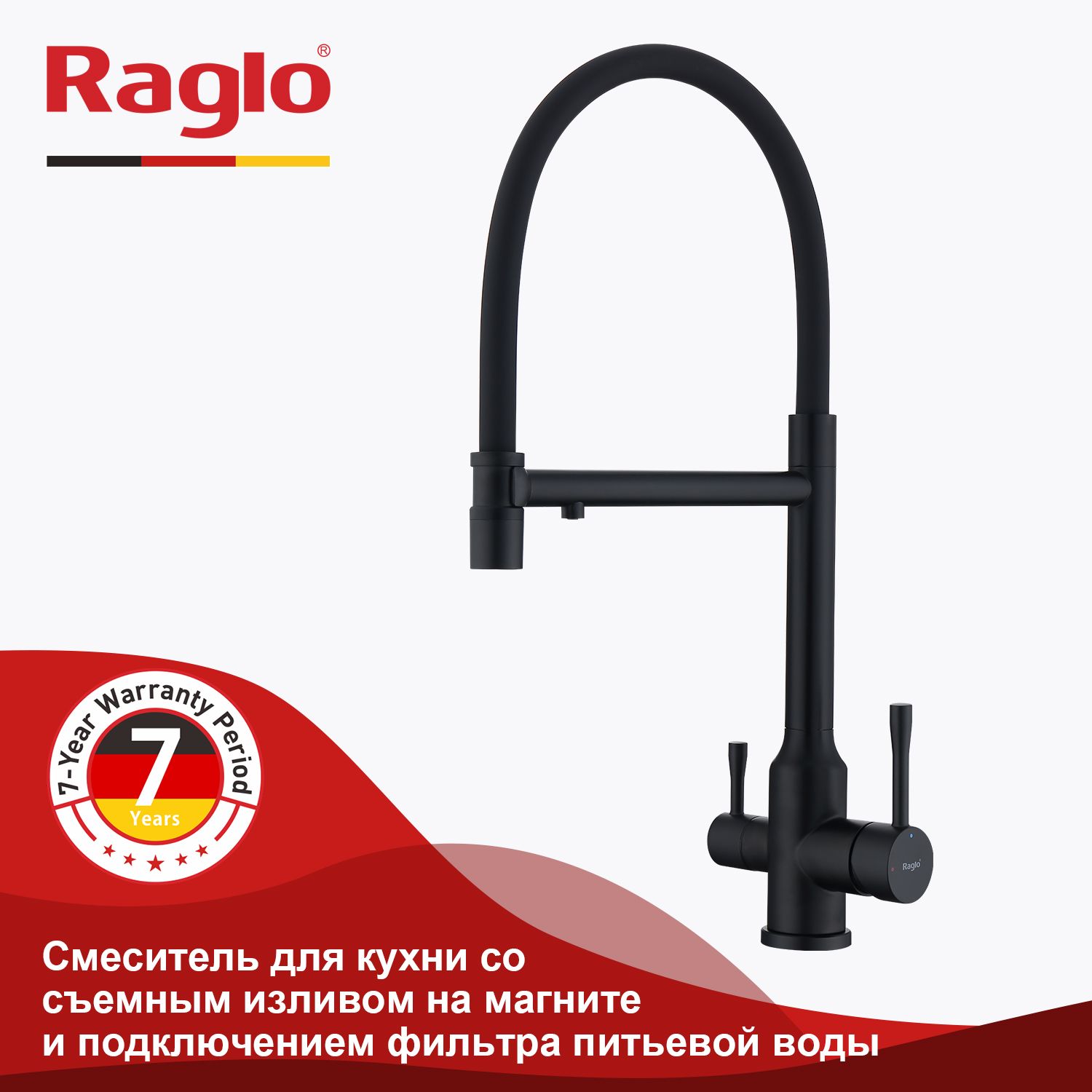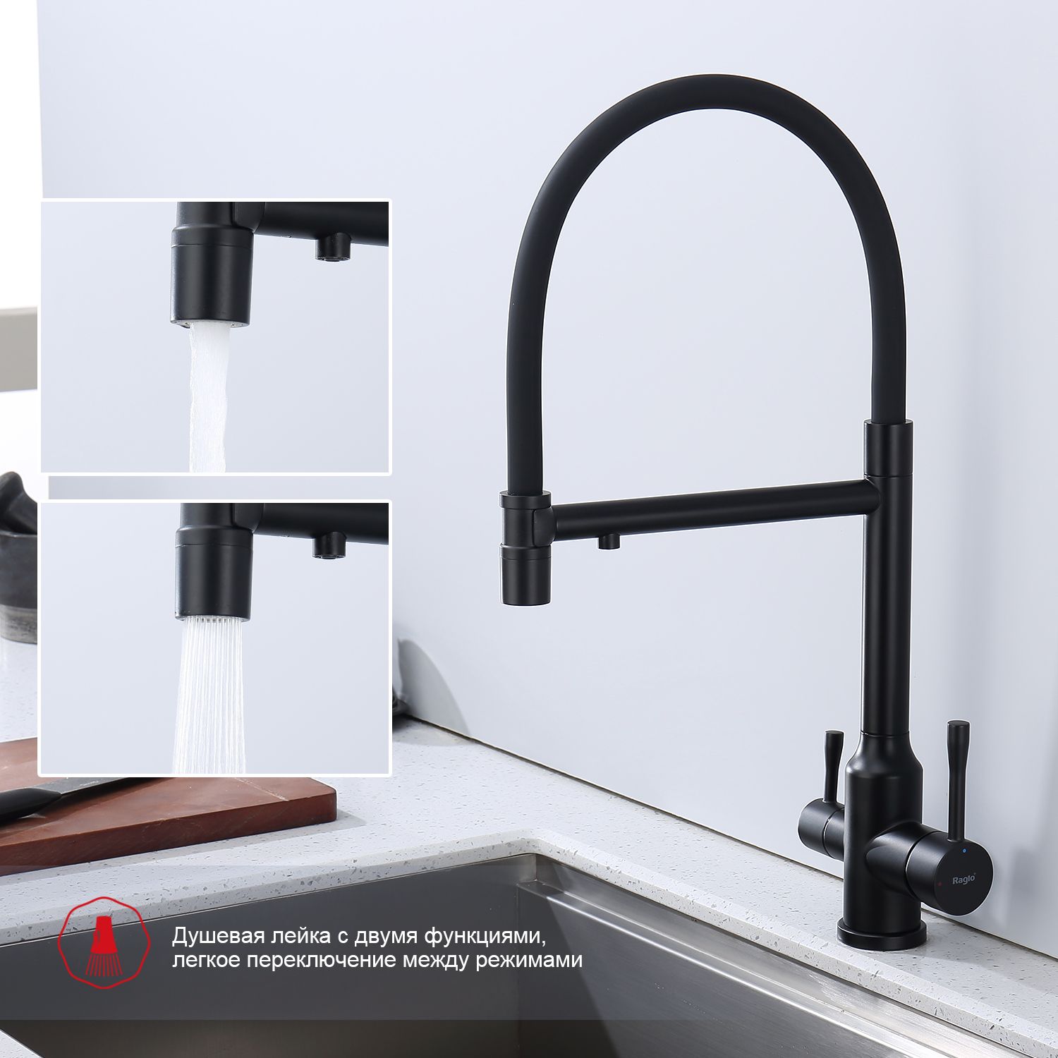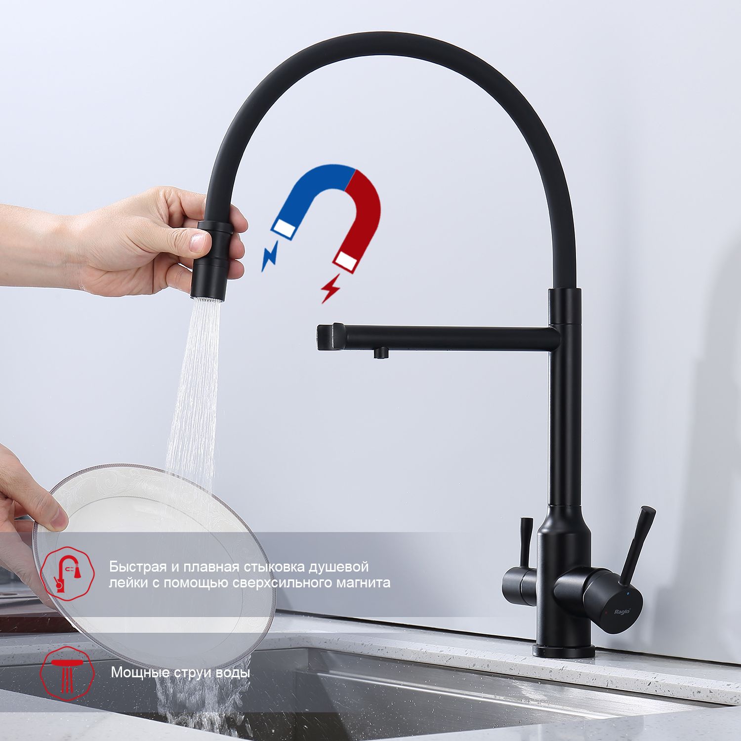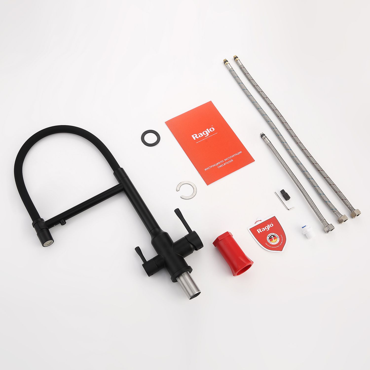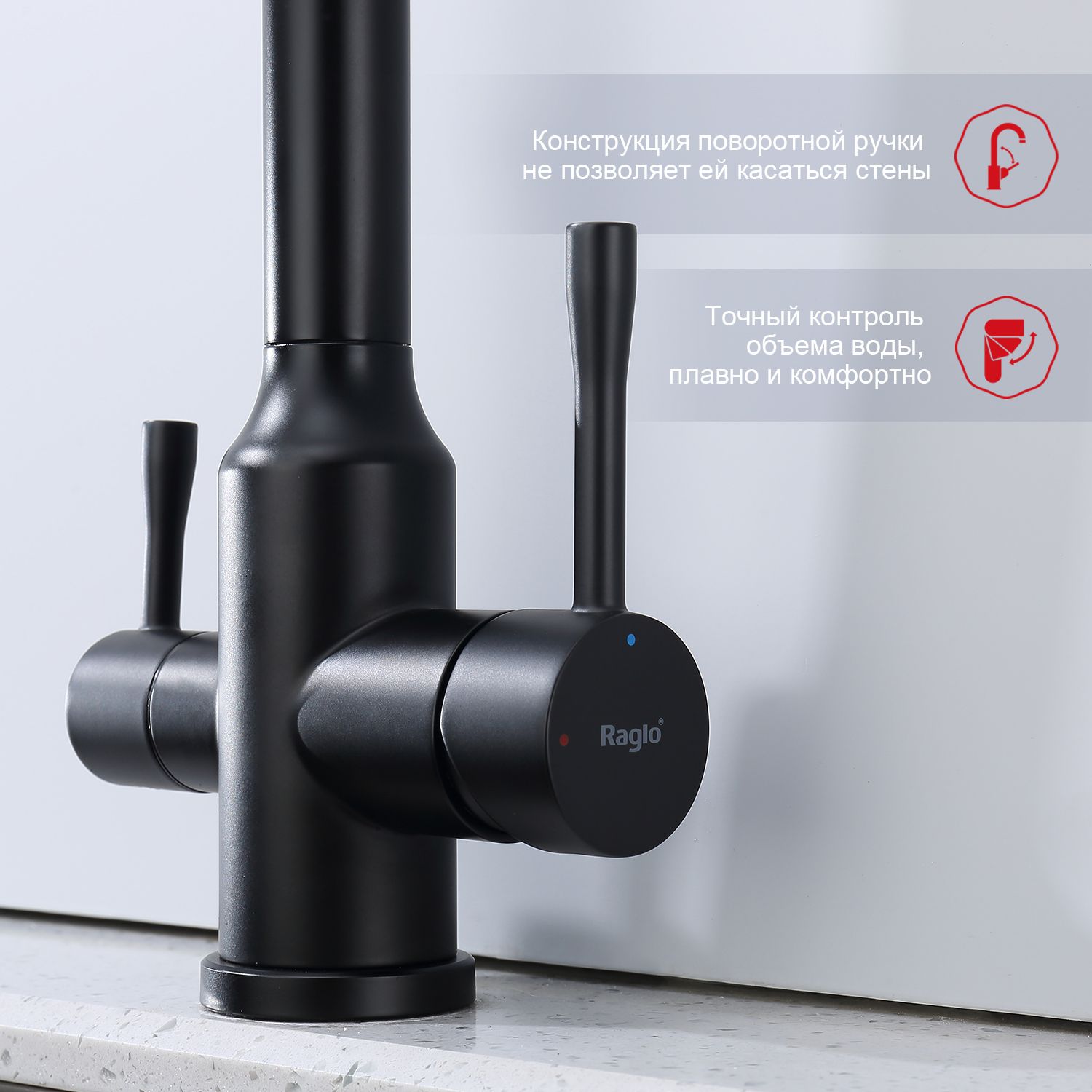 Смеситель для кухни со съемным изливом на магните и подключением фильтра питьевой воды Raglo черный R81.63.06