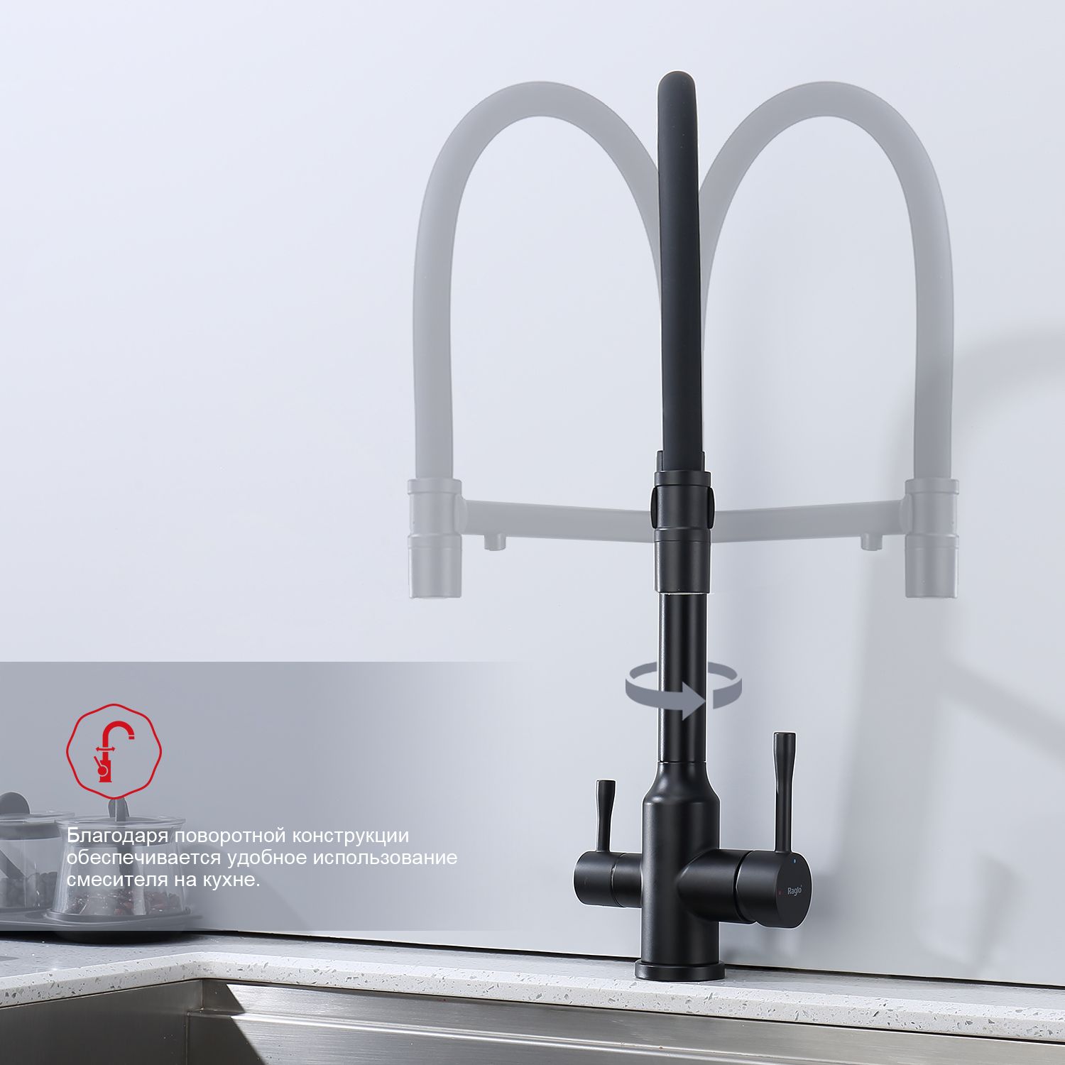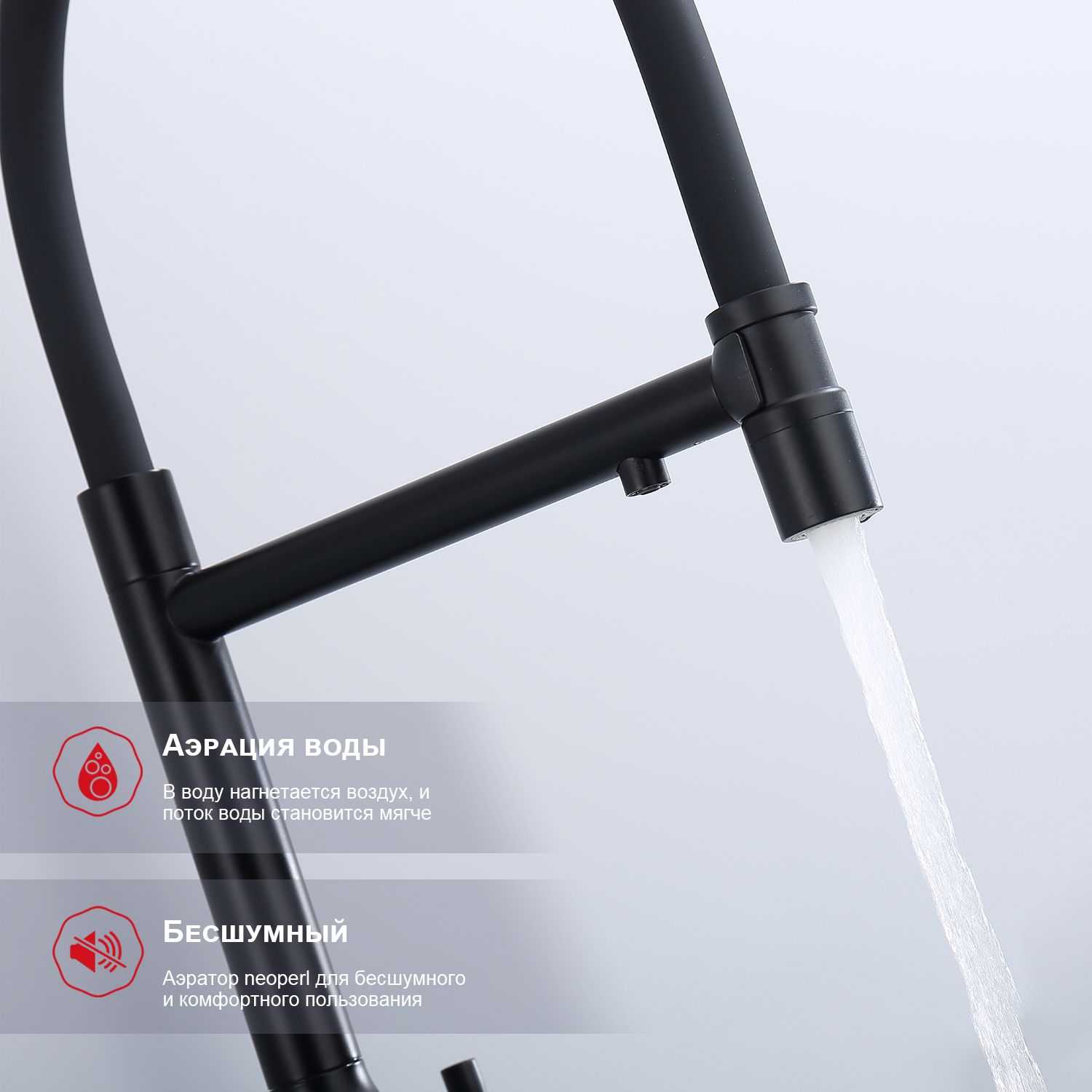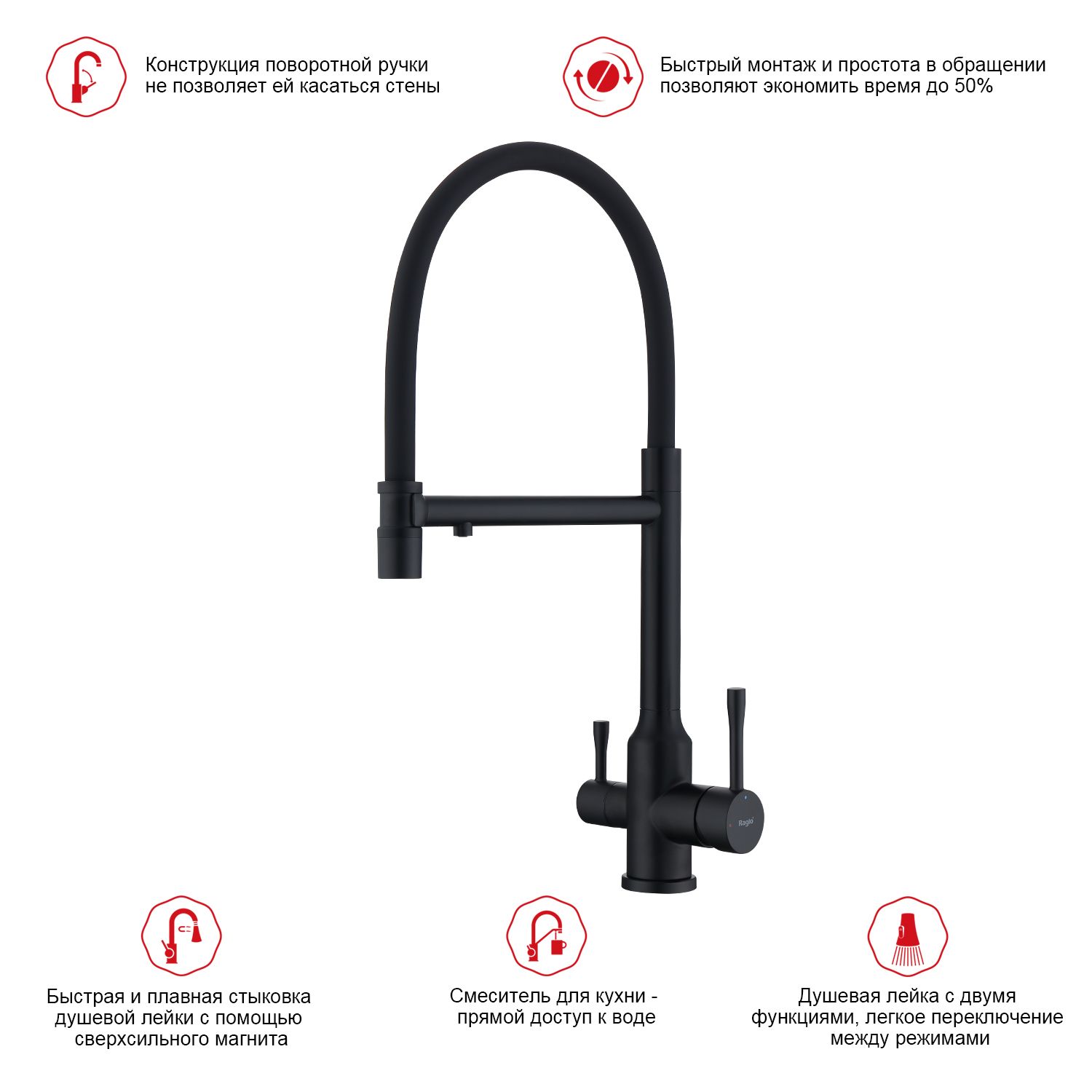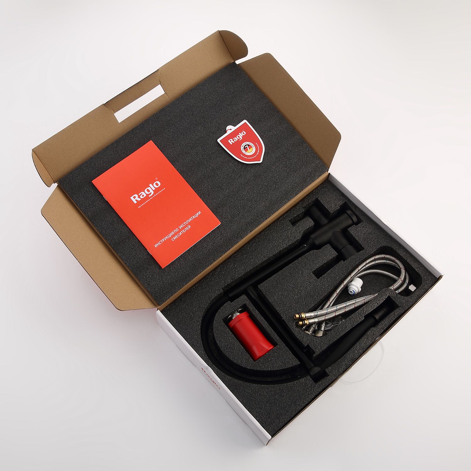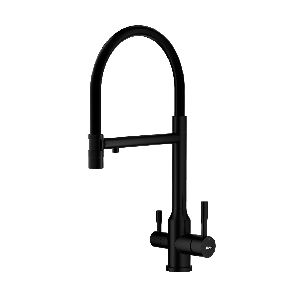 Смеситель для кухни со съемным изливом на магните и подключением фильтра питьевой воды Raglo черный R81.63.06