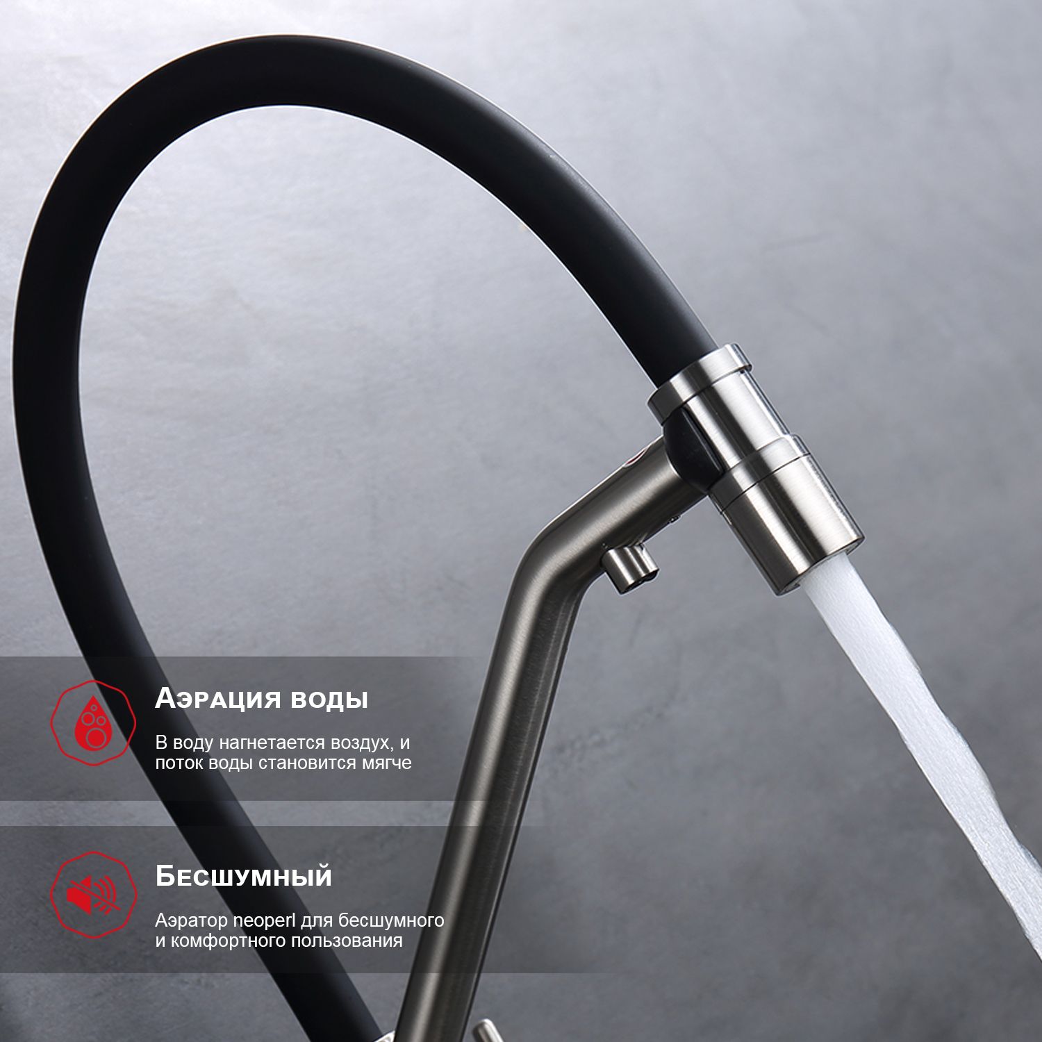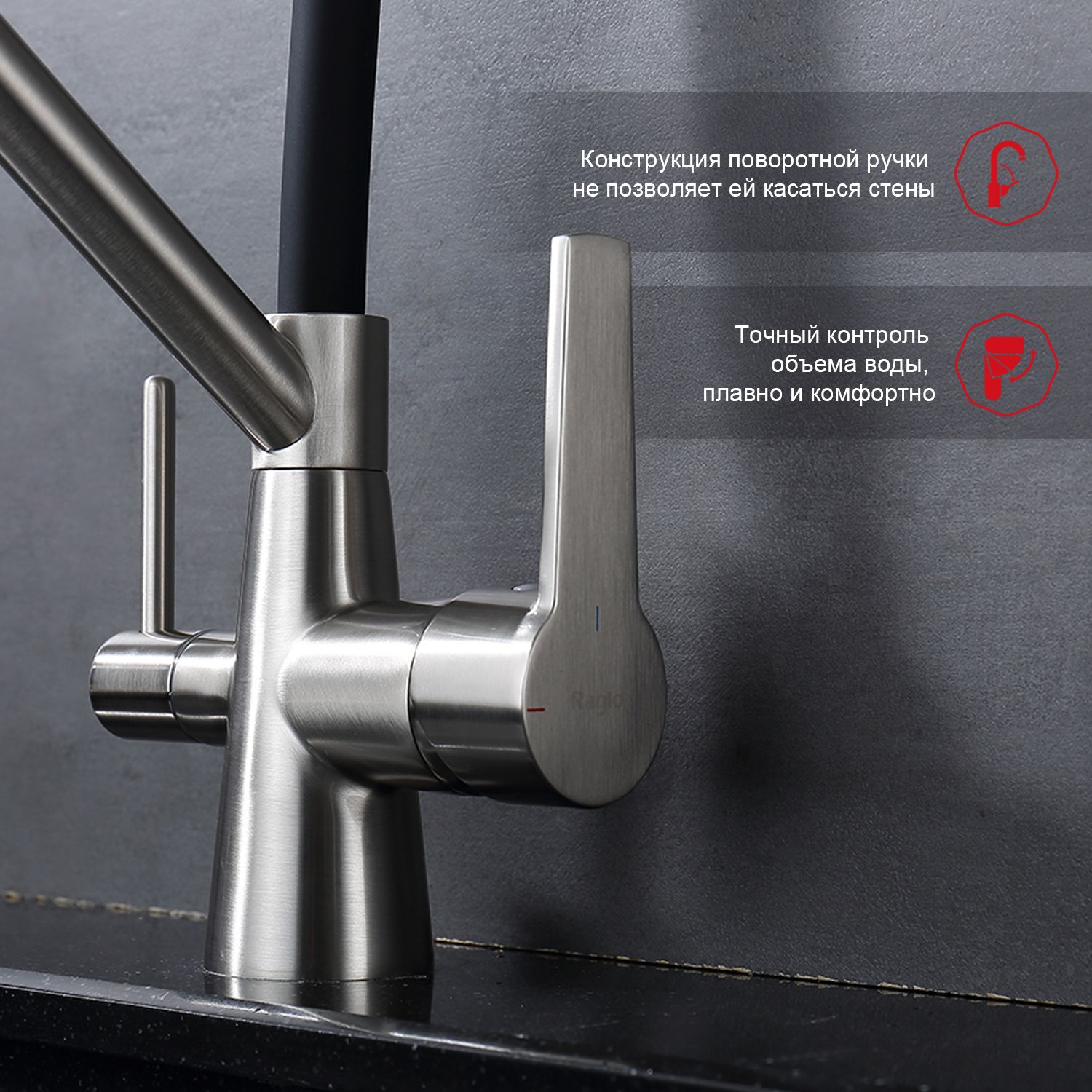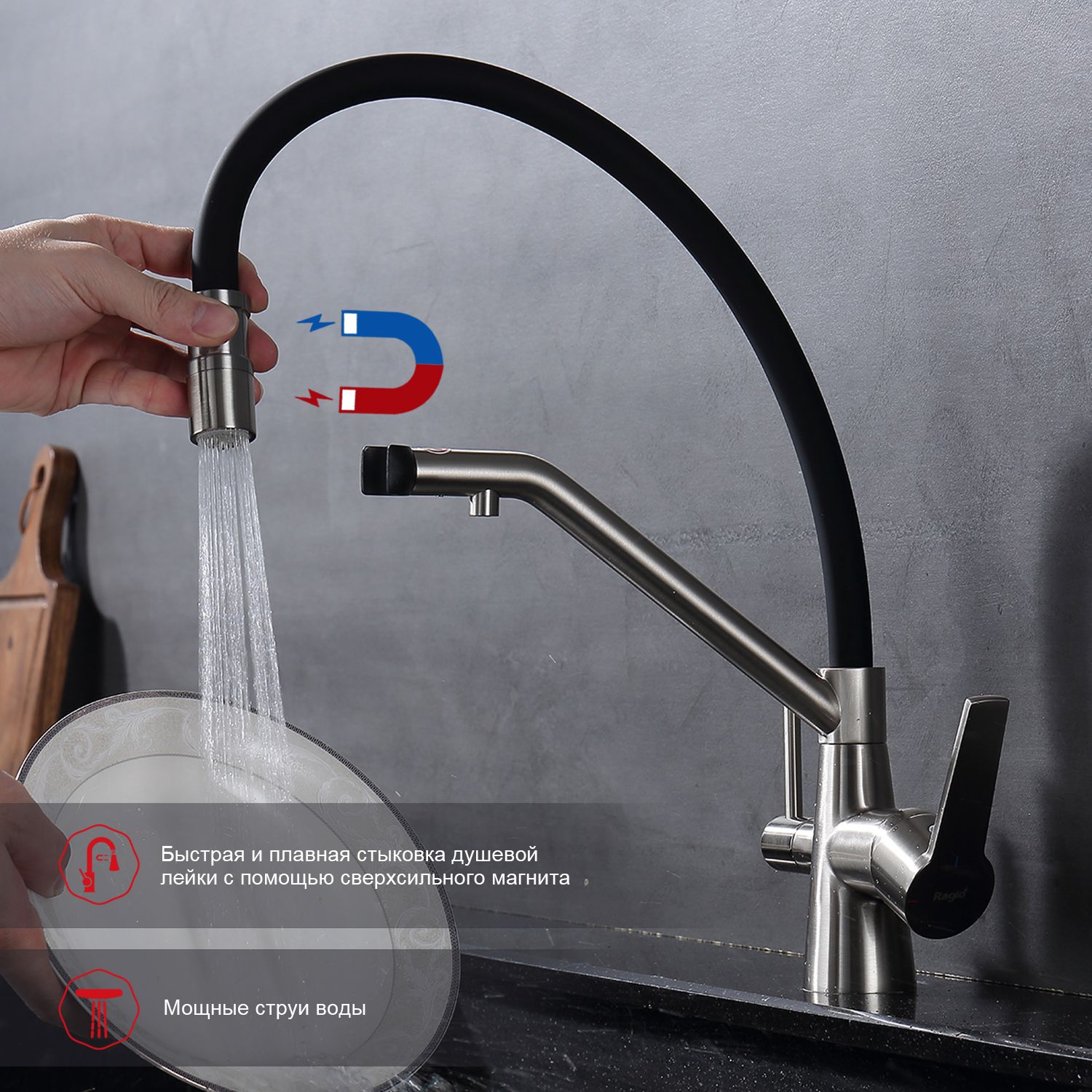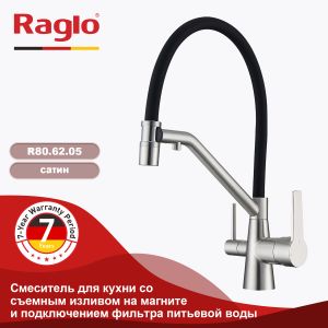 Смеситель для кухни со съемным изливом на магните и подключением фильтра питьевой воды Raglo сатин R80.62.05
