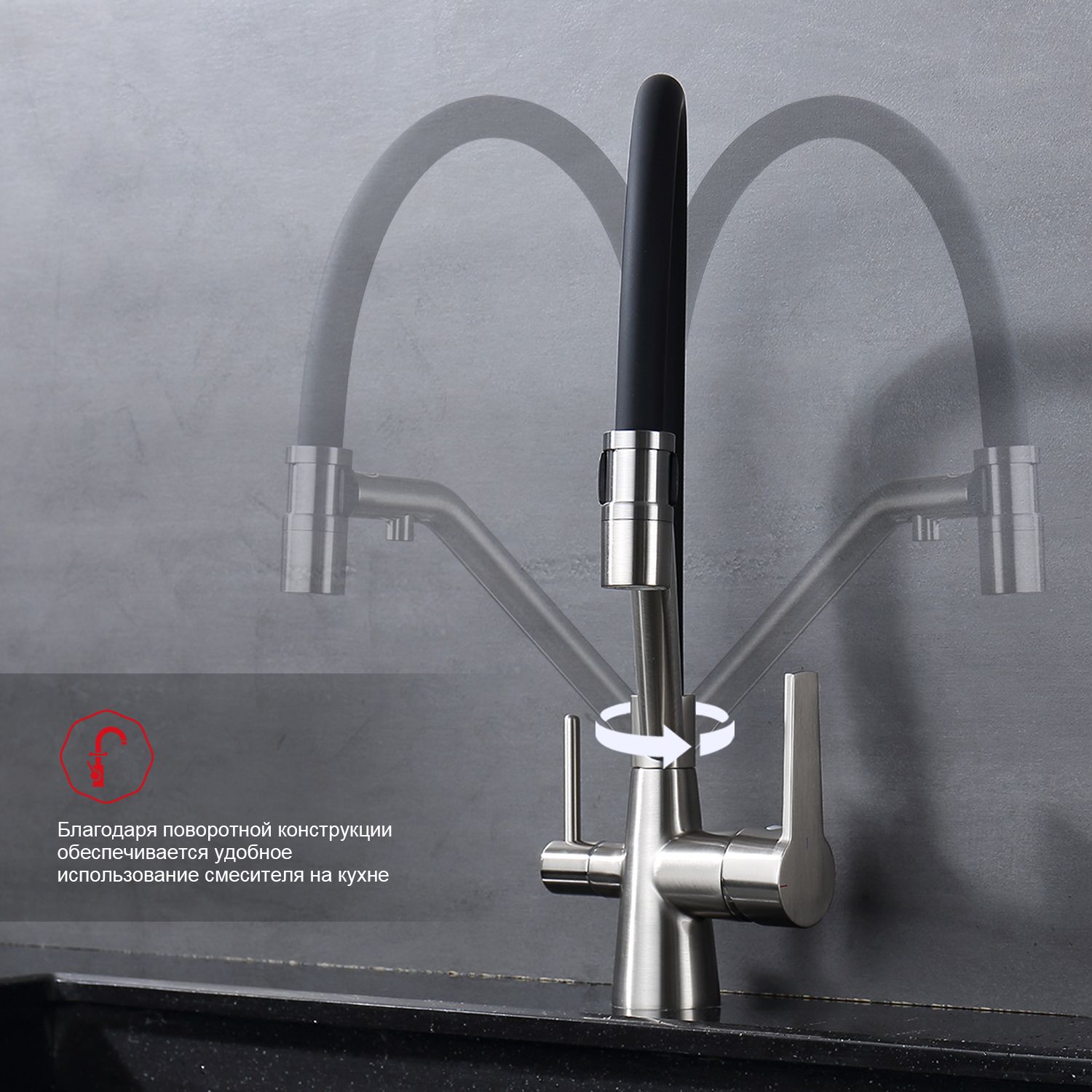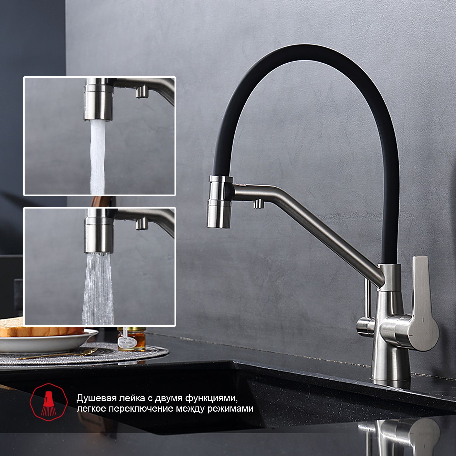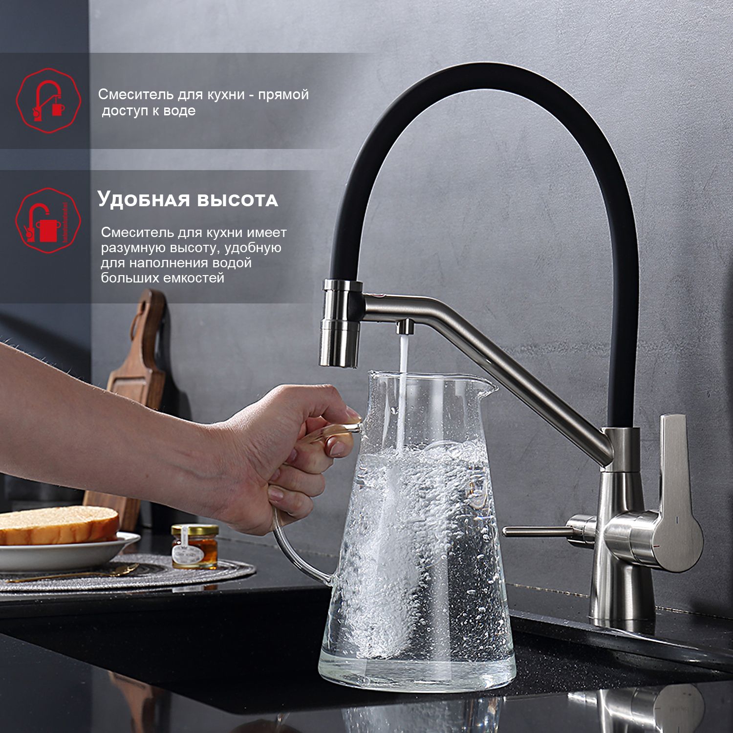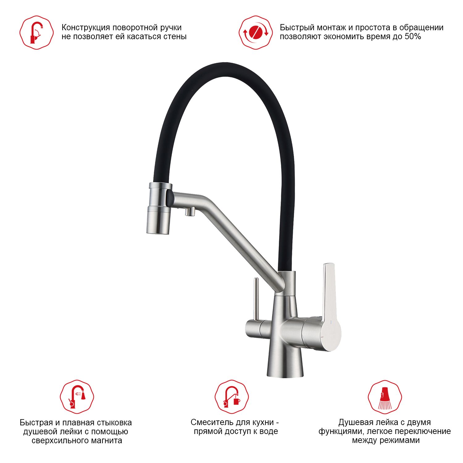 Смеситель для кухни со съемным изливом на магните и подключением фильтра питьевой воды Raglo сатин R80.62.05
