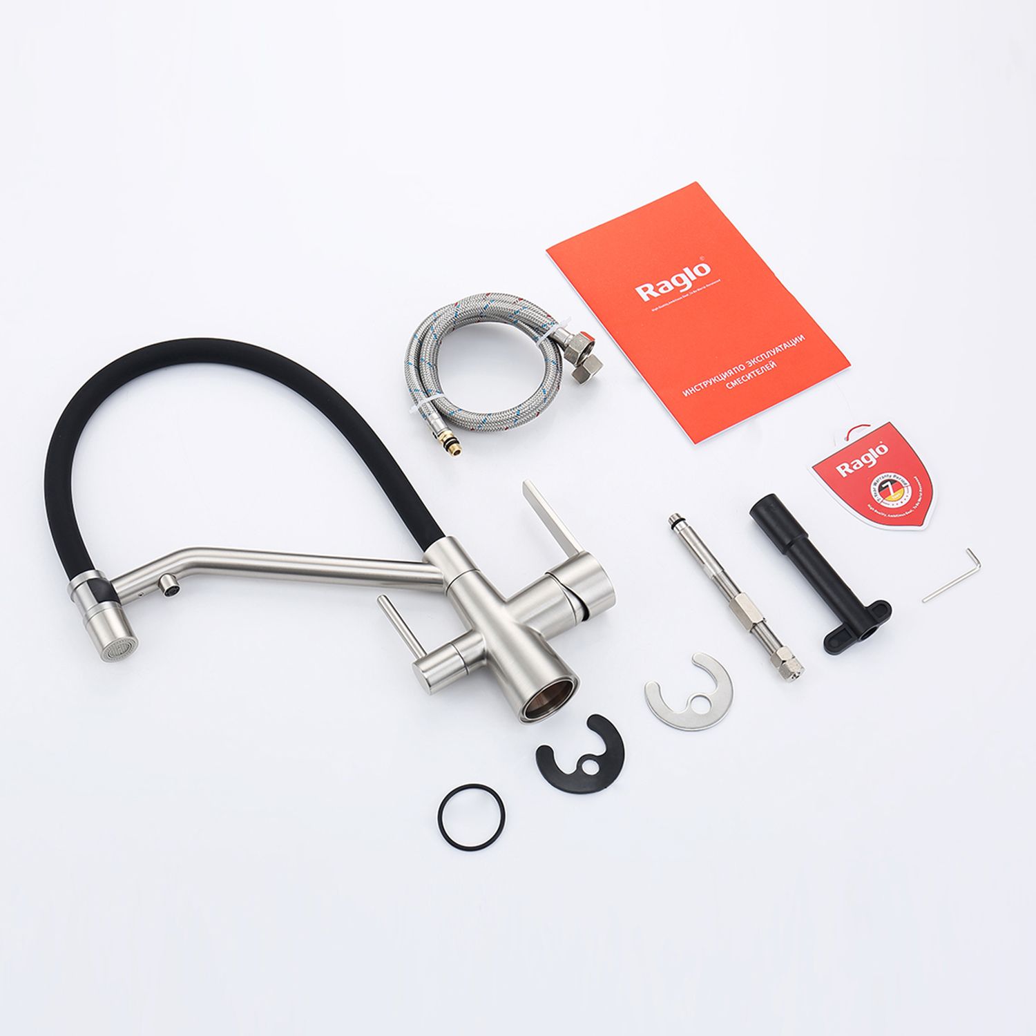 Смеситель для кухни со съемным изливом на магните и подключением фильтра питьевой воды Raglo хром R80.62