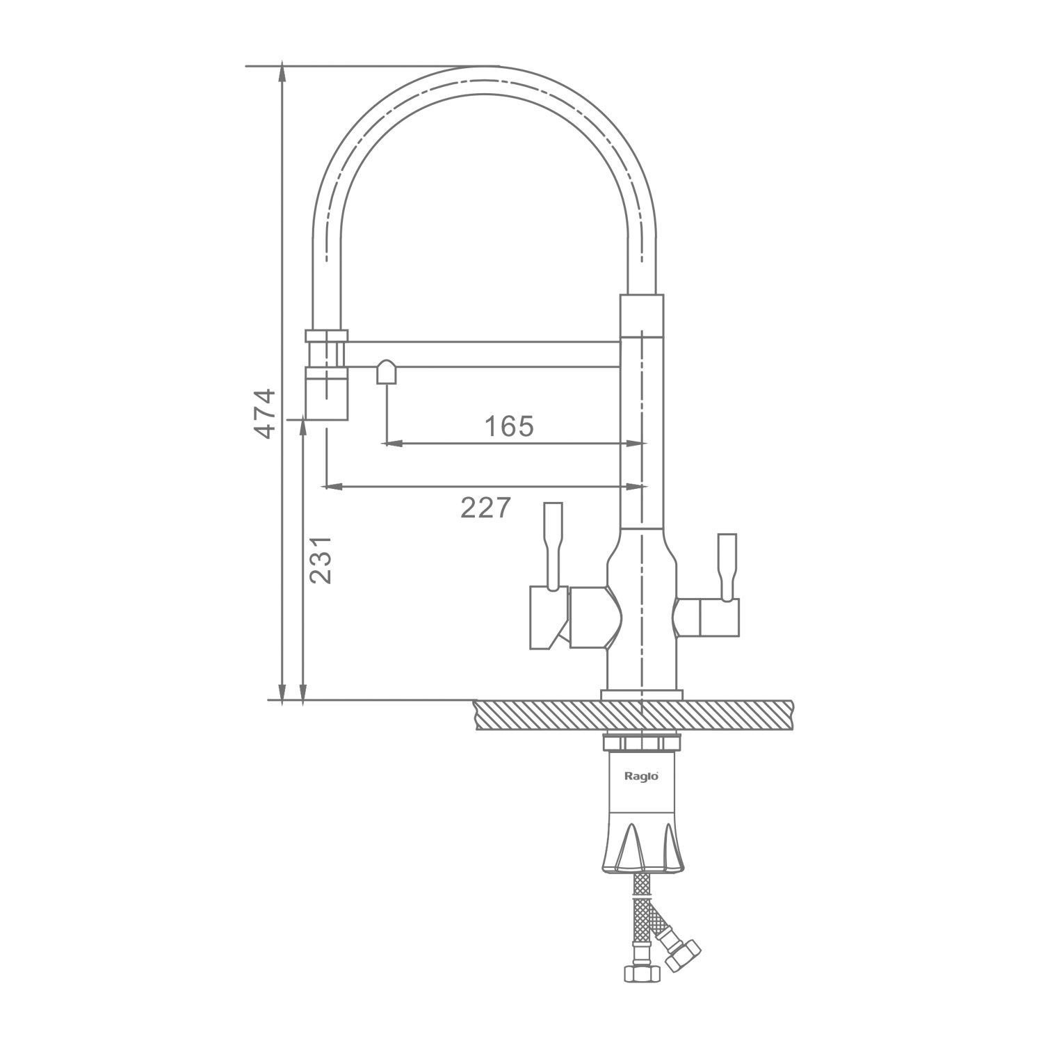 Смеситель для кухни со съемным изливом на магните и подключением фильтра питьевой воды Raglo графит R81.63.09