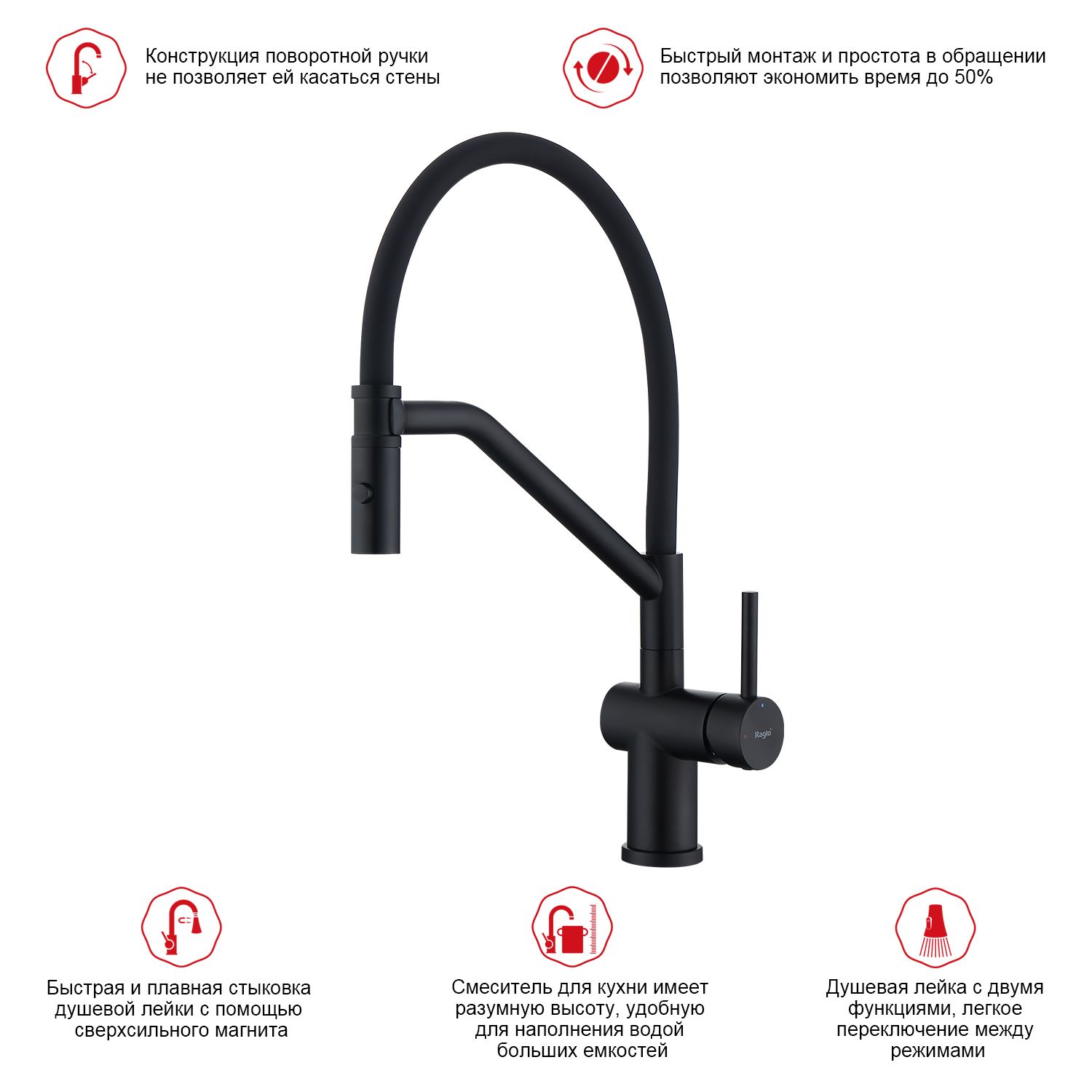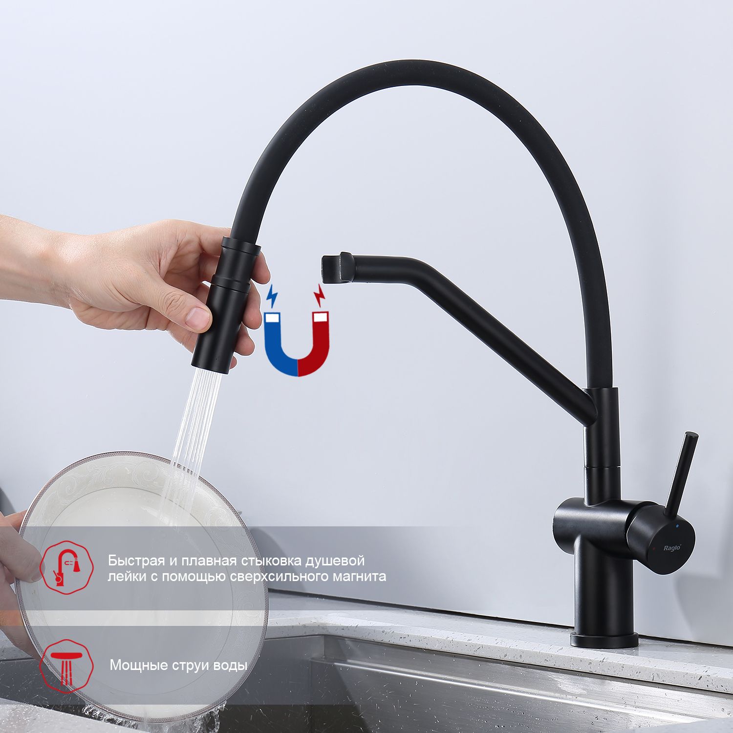 Смеситель для кухни со съемным изливом на магните Raglo черный R86.41.06