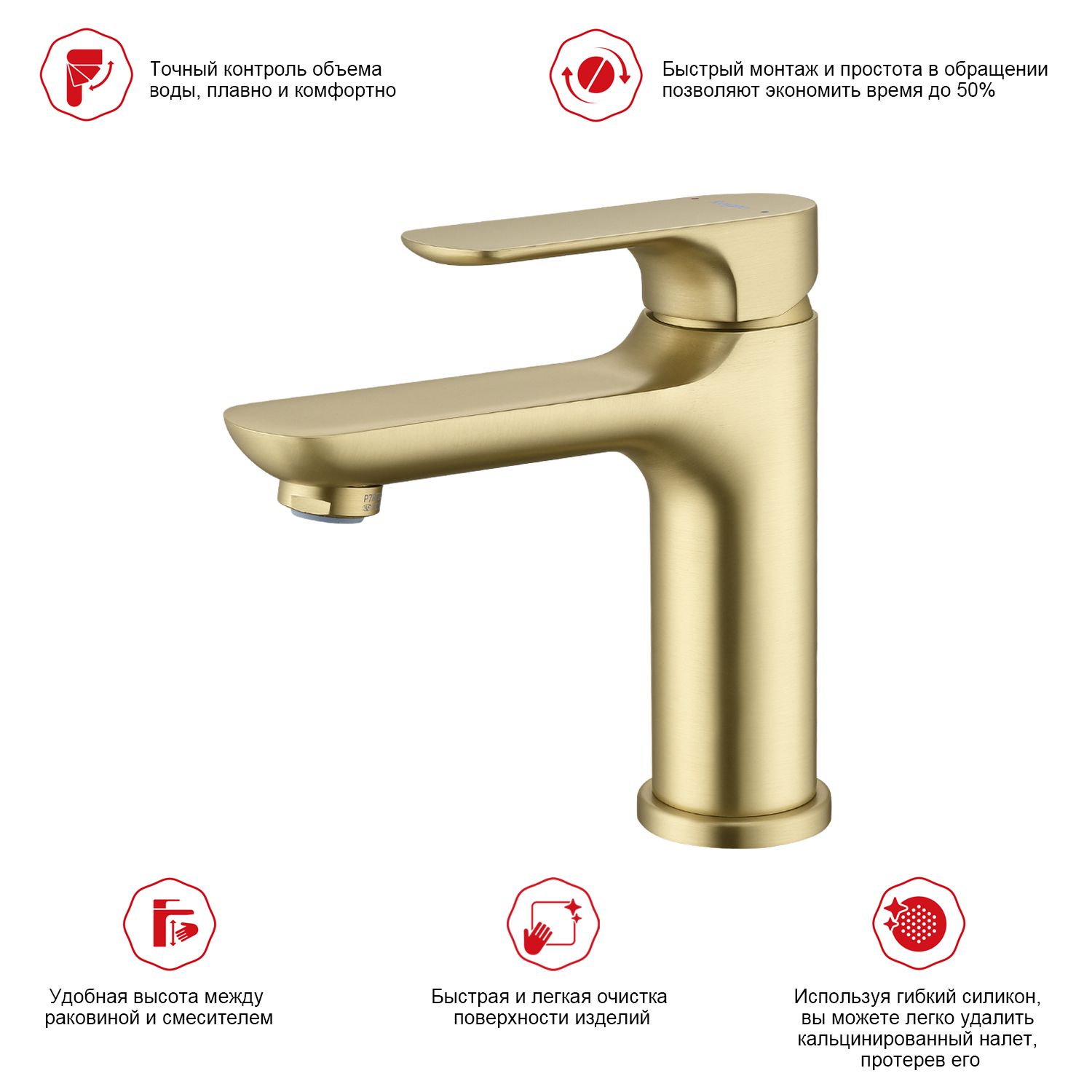 Смеситель для раковины Raglo сатин золото R03.10.03