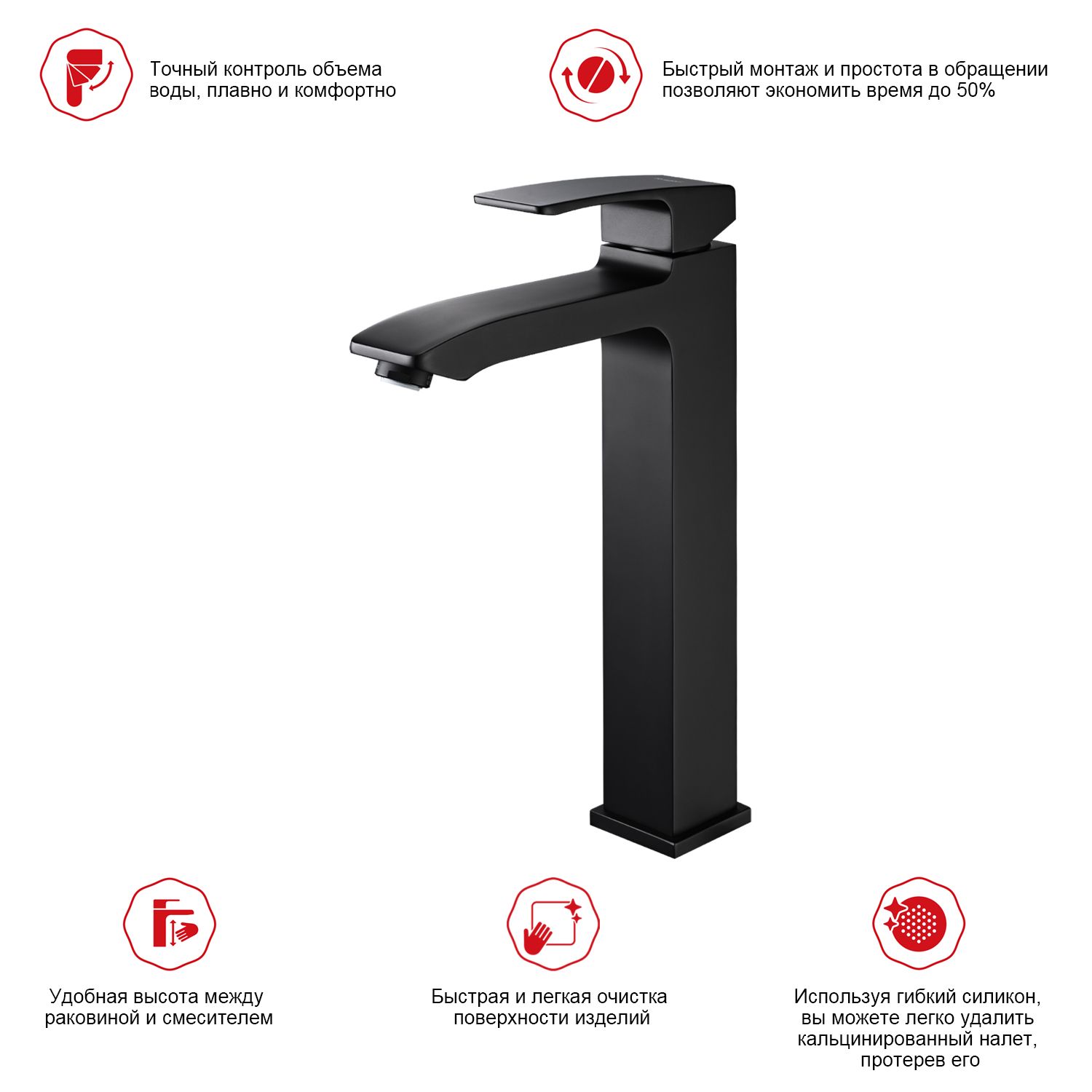 Смеситель для раковины высокий Raglo черный R01.15.06