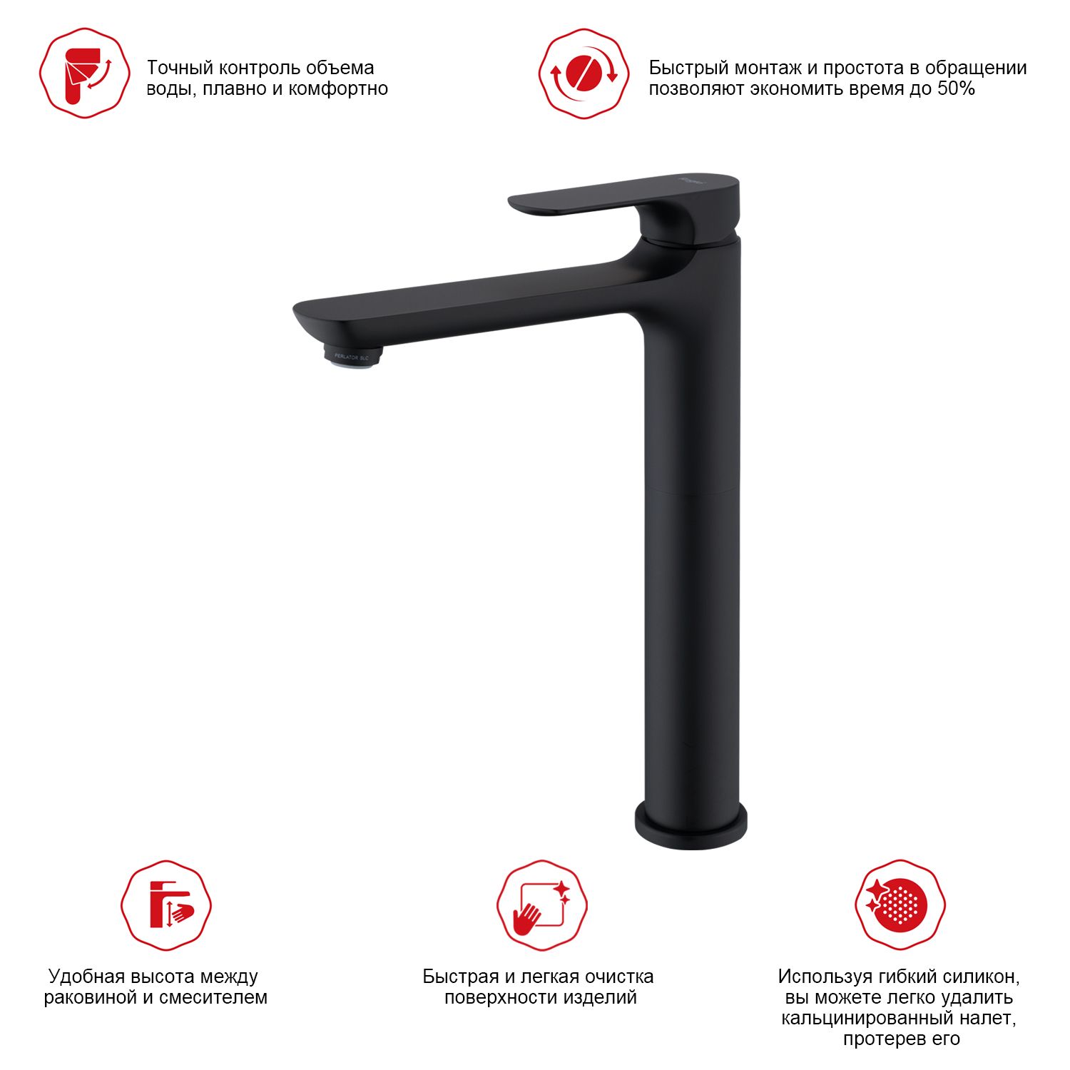 Смеситель для раковины высокий Raglo черный R03.15.06