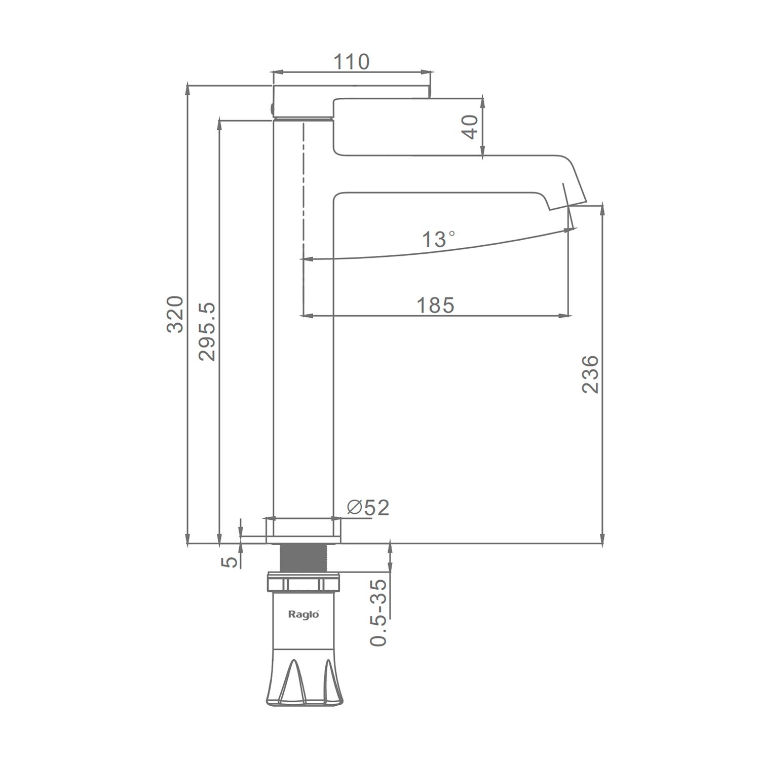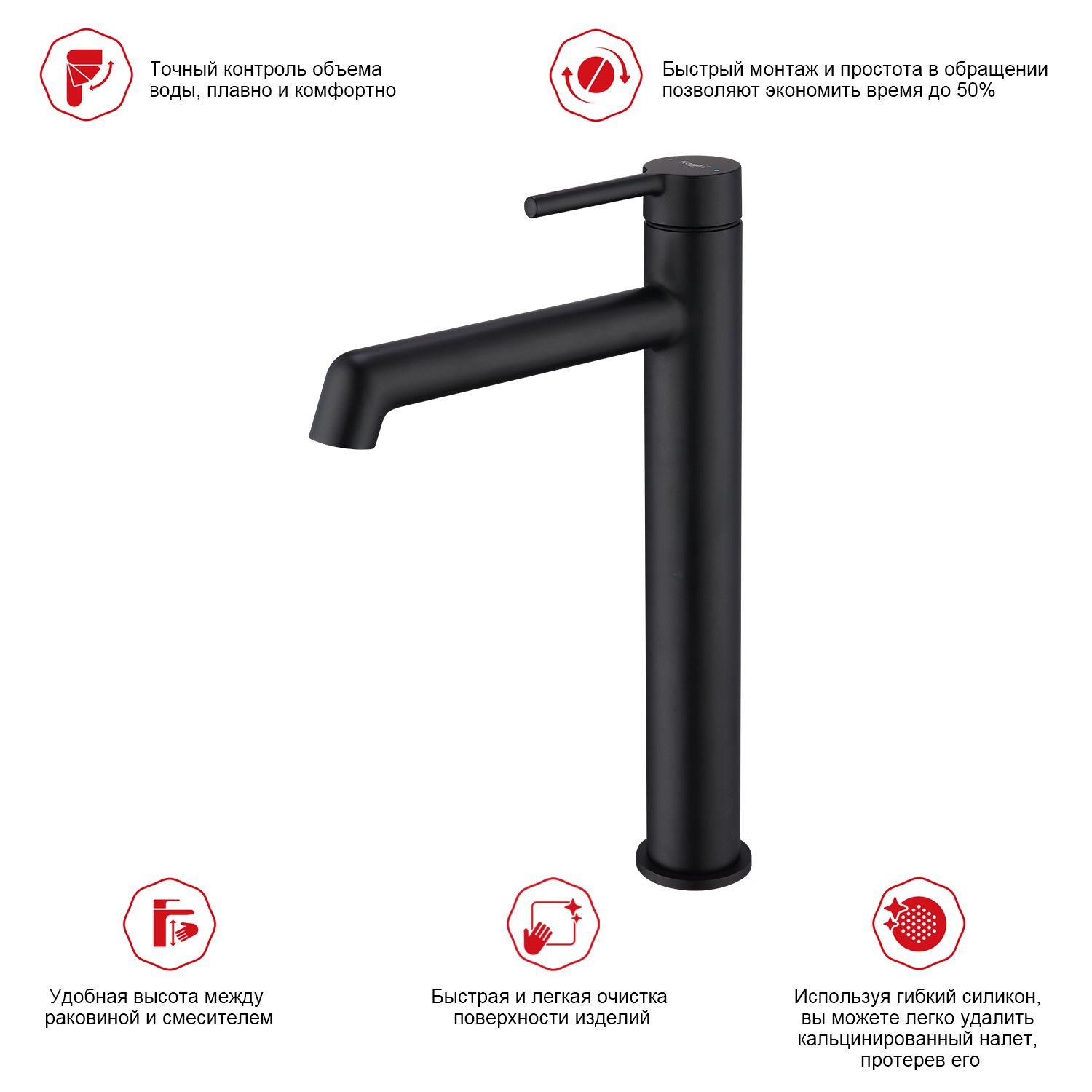 Смеситель для раковины высокий Raglo черный R20.15.06