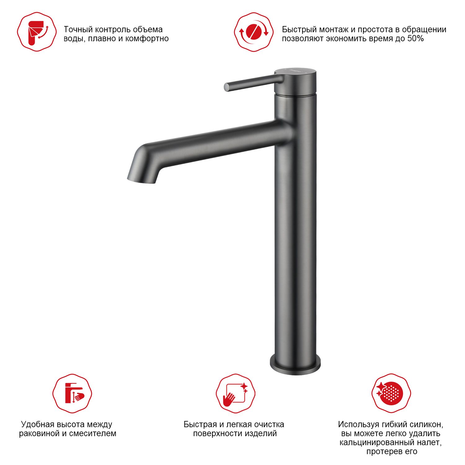 Смеситель для раковины высокий Raglo графит R20.15.09