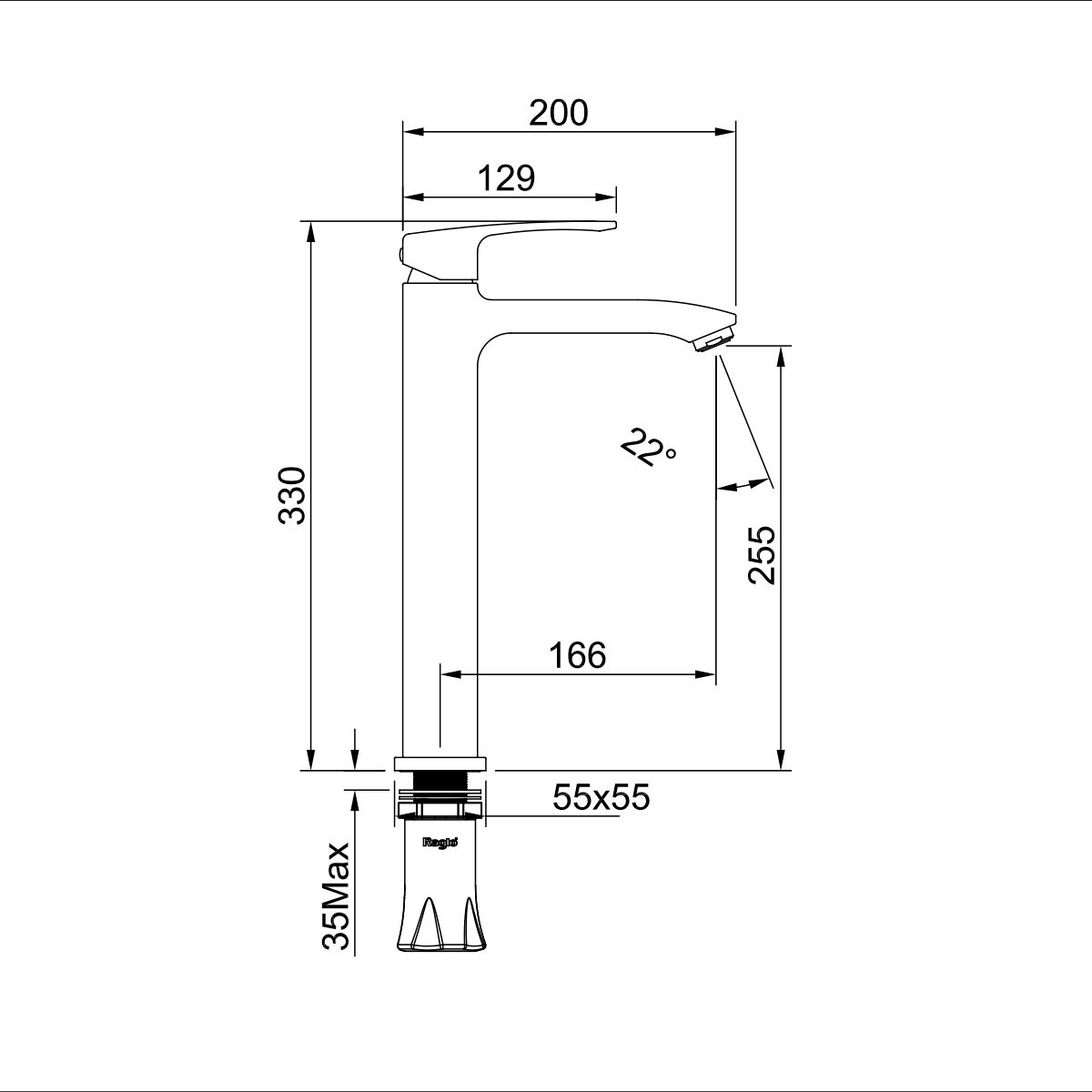 Смеситель для раковины высокий Raglo черный R01.15.06