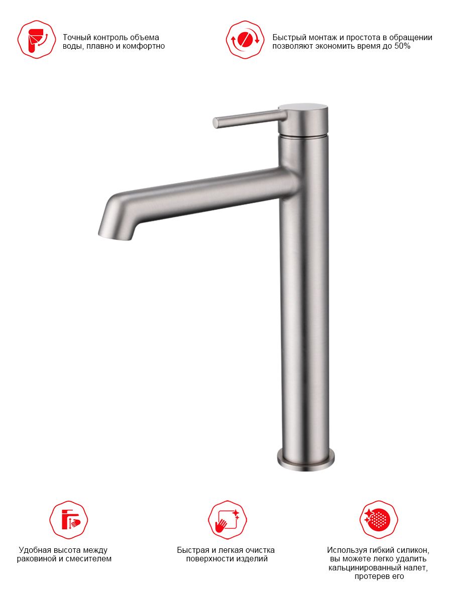 Смеситель для раковины высокий Raglo сатин R20.15.05