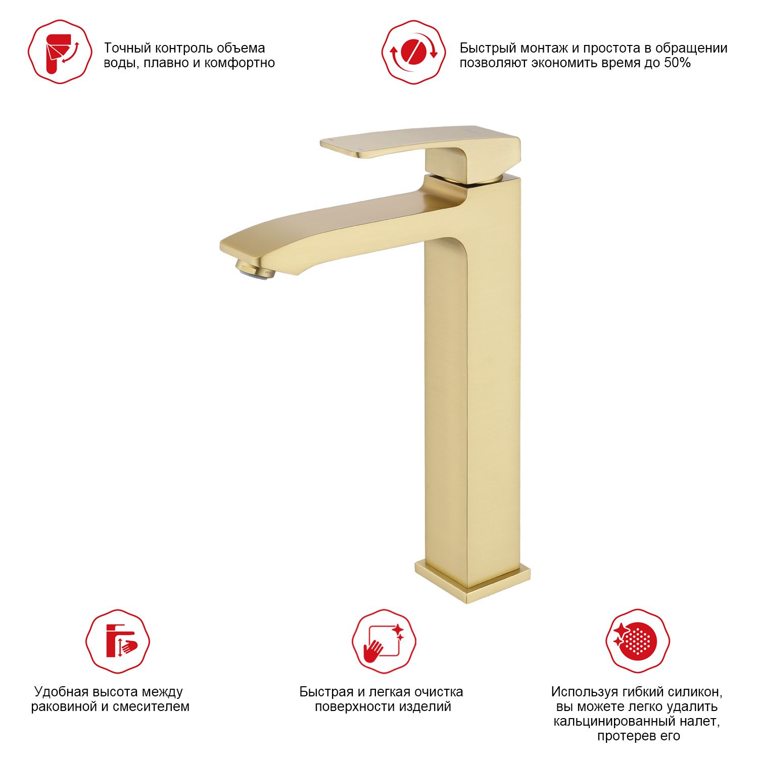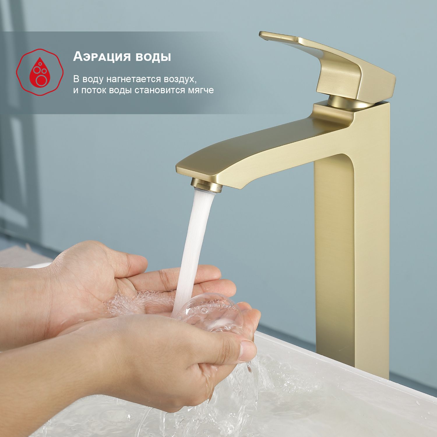 Смеситель для раковины высокий Raglo сатин золото R01.15.03