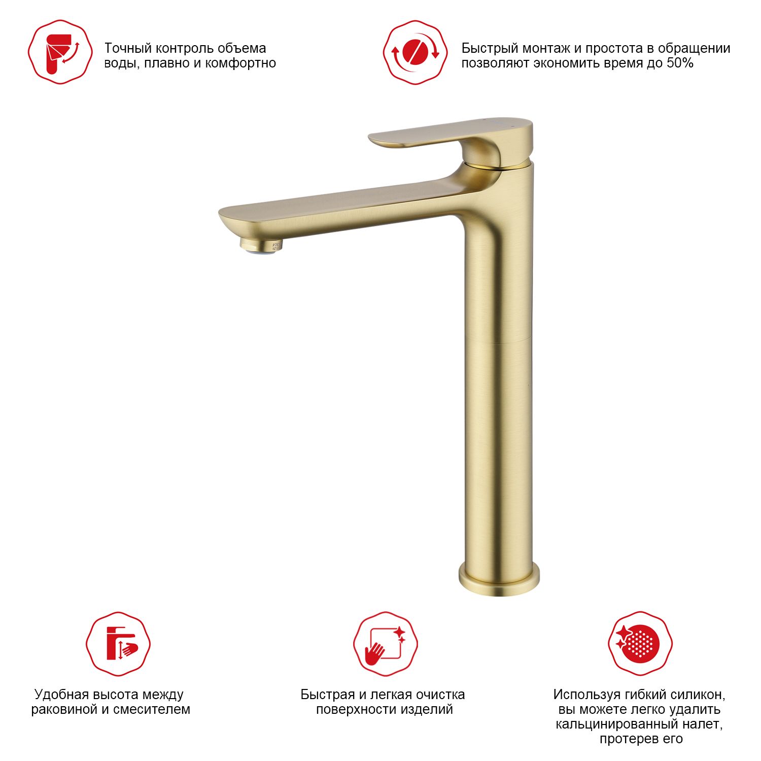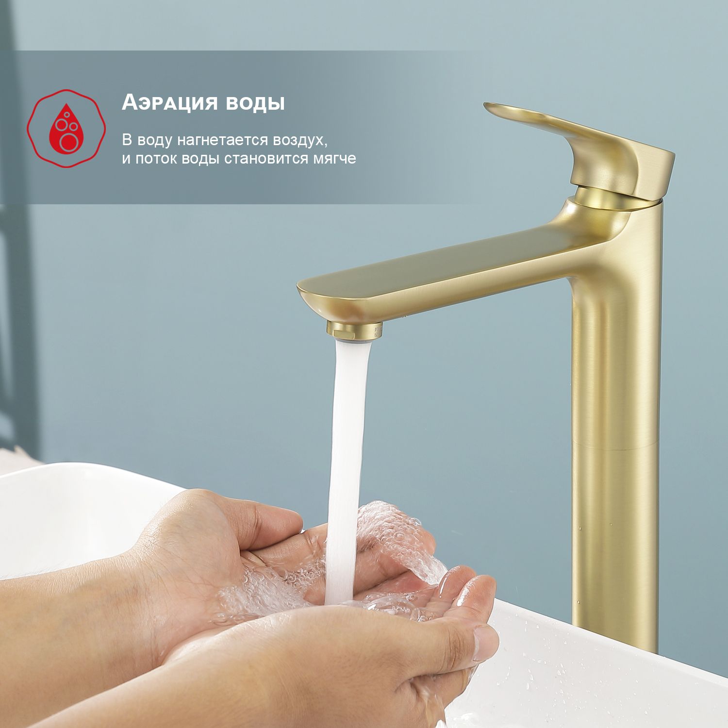 Смеситель для раковины высокий Raglo сатин золото R03.15.03