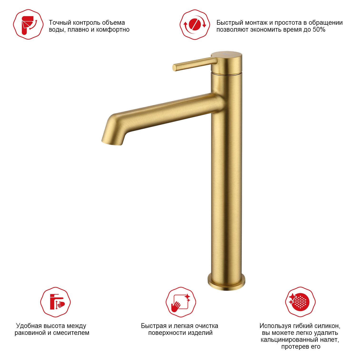 Смеситель для раковины высокий Raglo сатин золото R20.15.03