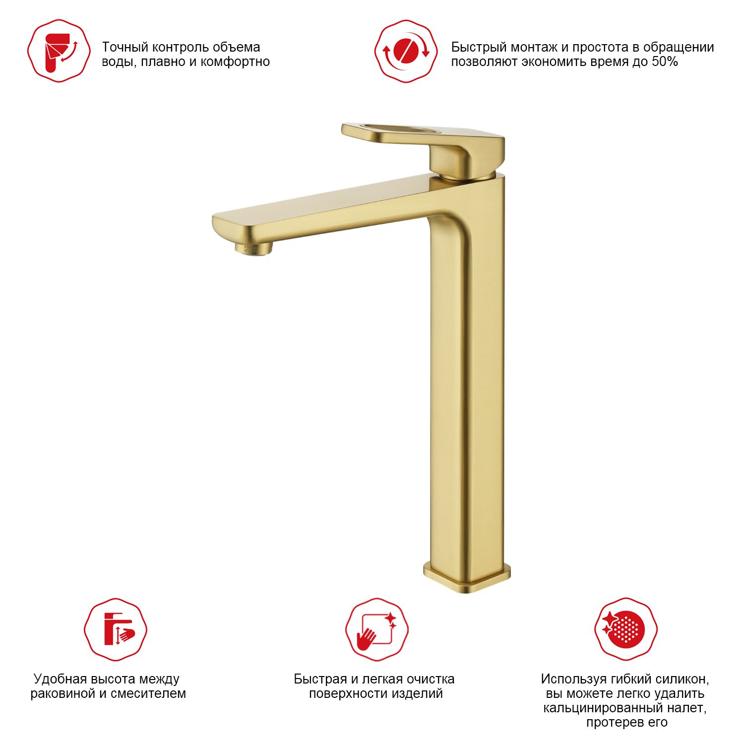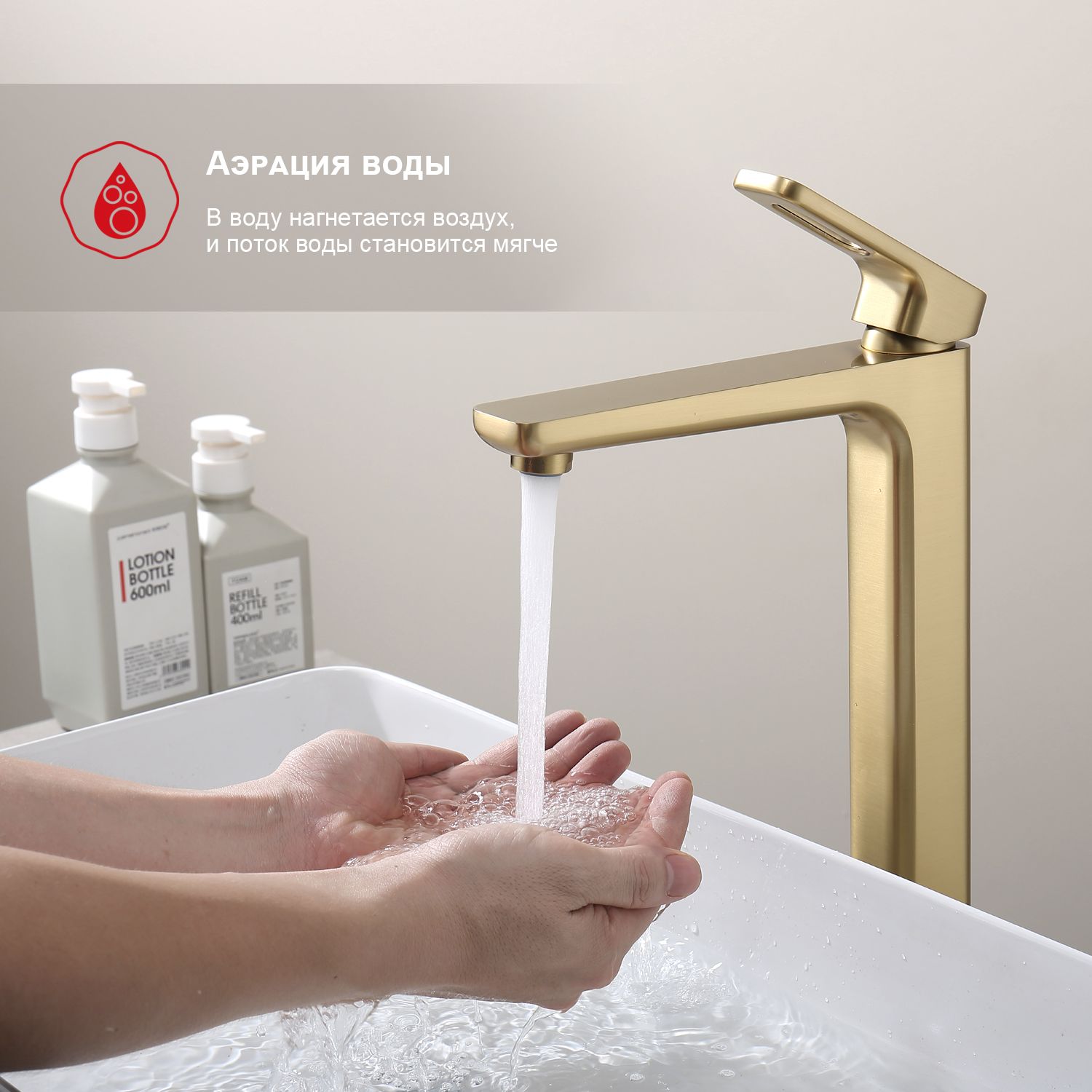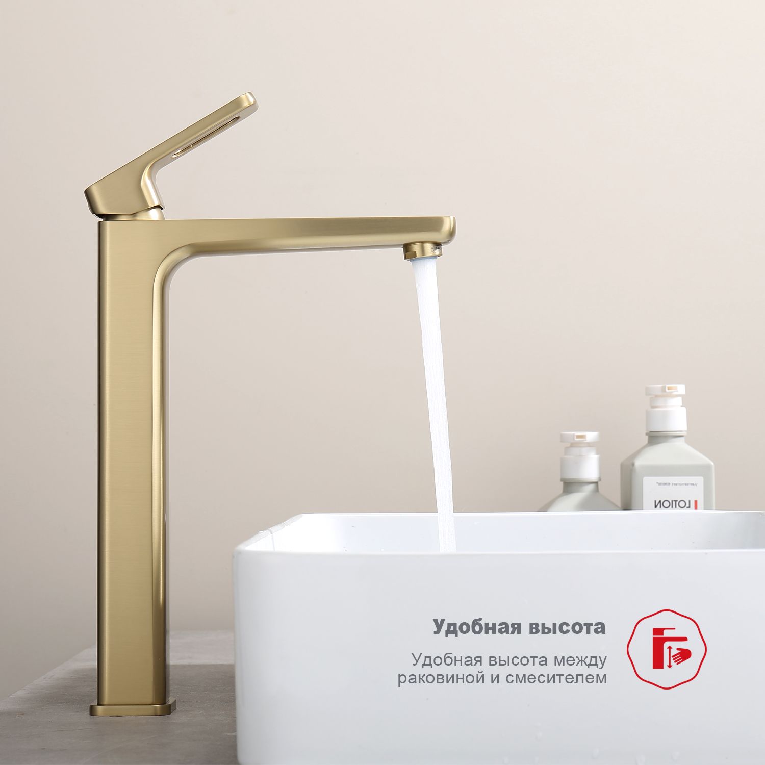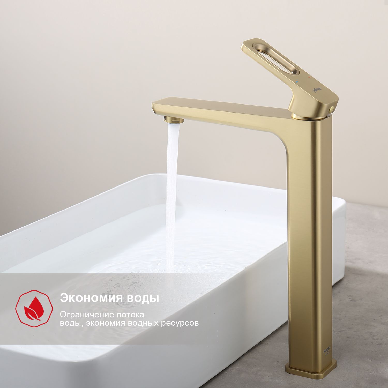 Смеситель для раковины высокий Raglo сатин золото R51.15.03