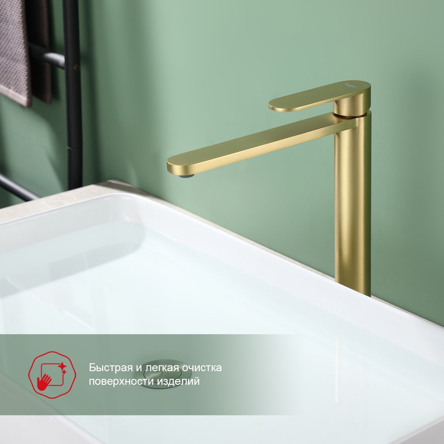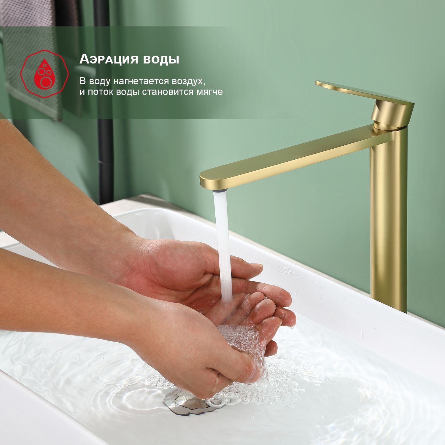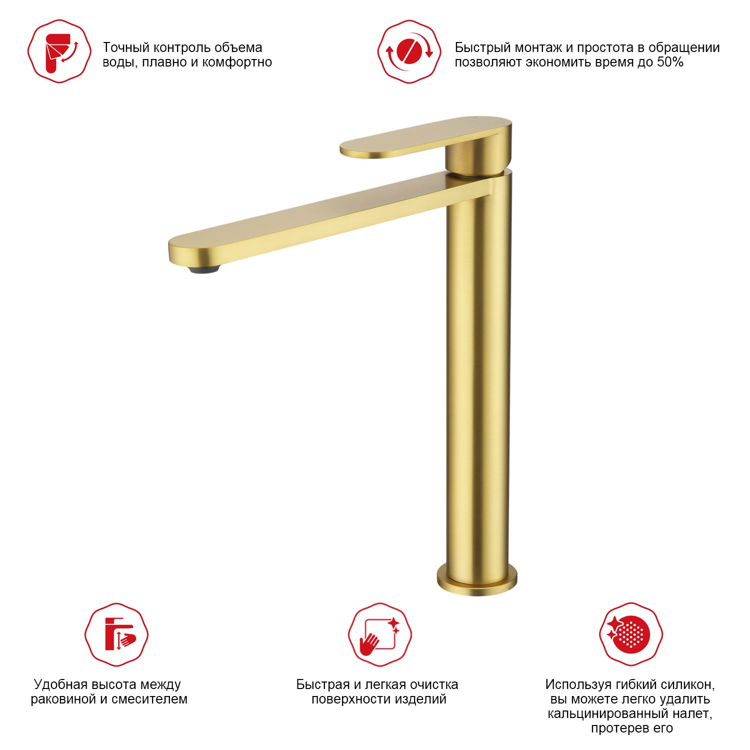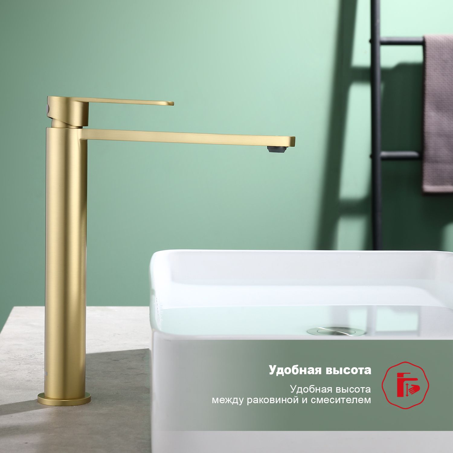 Смеситель для раковины высокий Raglo золотой сатин R10.15.03