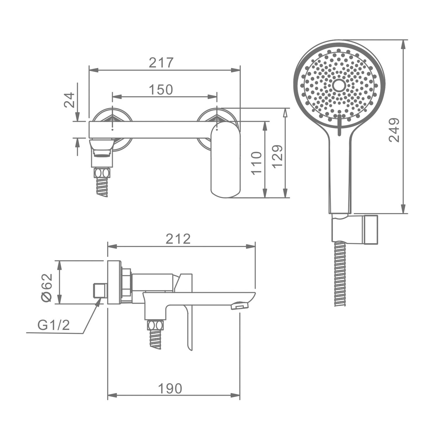 Смеситель для ванны на 3 отверстия Raglo хром R01.31