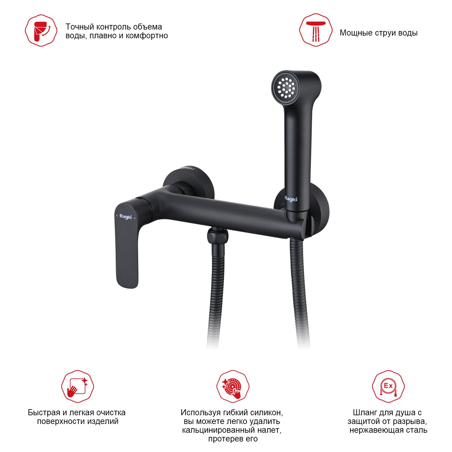 Смеситель с гигиеническим душем Raglo черный R03.51.06