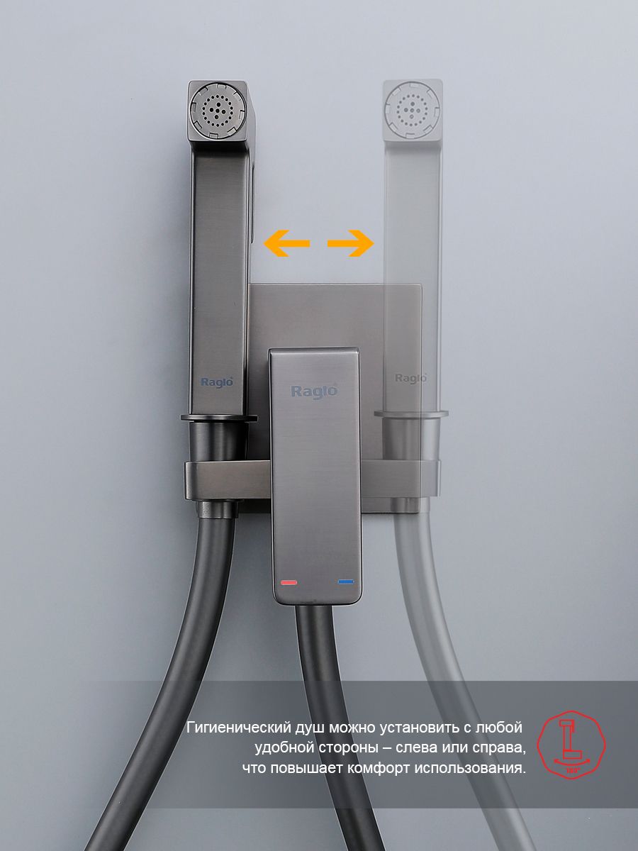 Смеситель с гигиеническим душем Raglo оружейная сталь R02.54.09