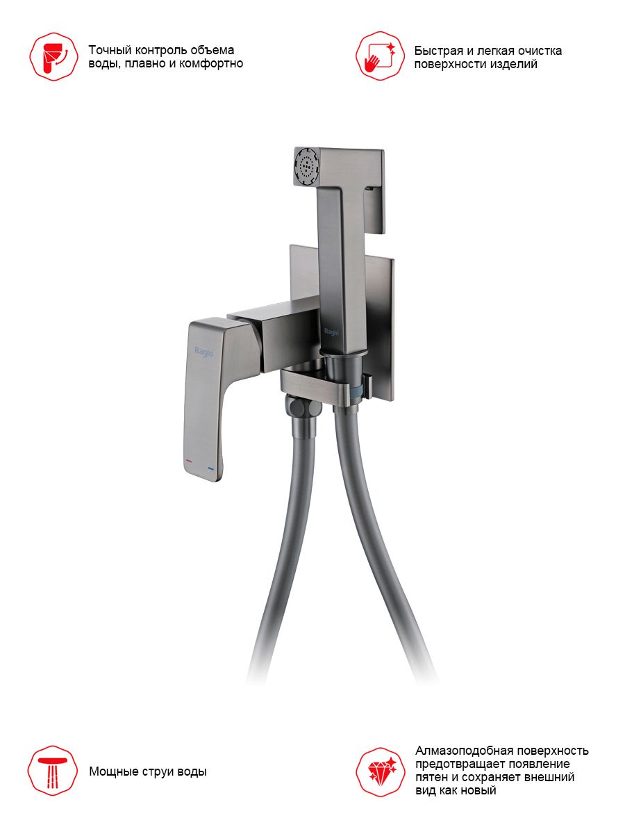 Смеситель с гигиеническим душем Raglo оружейная сталь R10.52.09