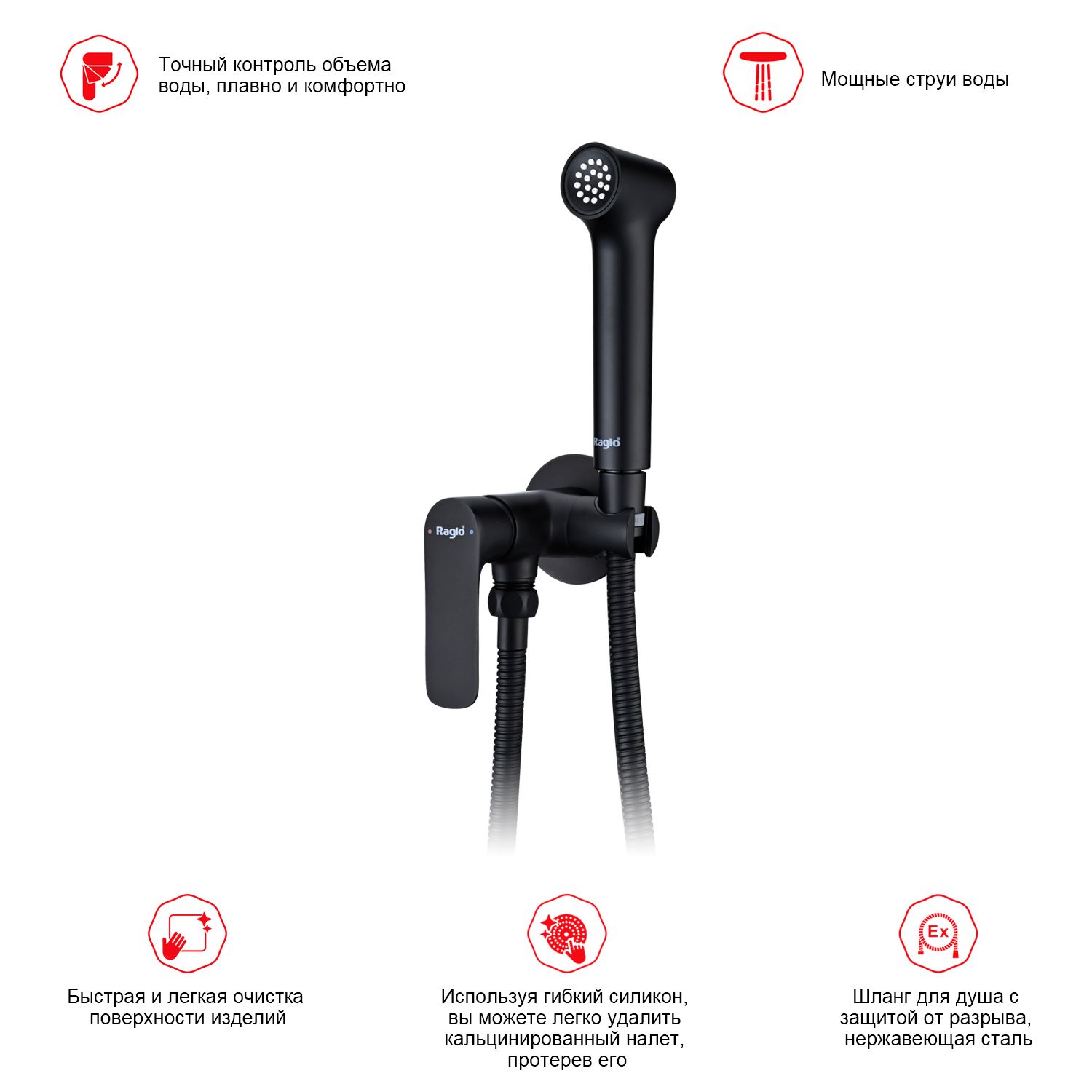Смеситель с гигиеническим душем встраиваемый Raglo черный R03.52.06