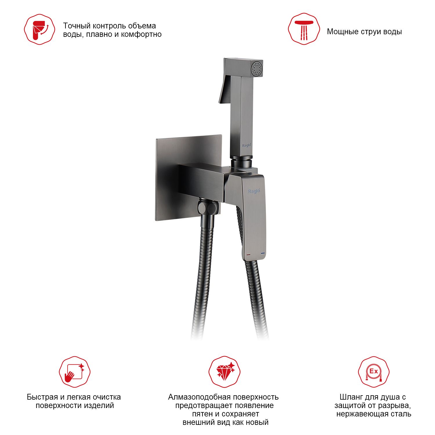 Смеситель с гигиеническим душем встраиваемый Raglo графит R01.52.09