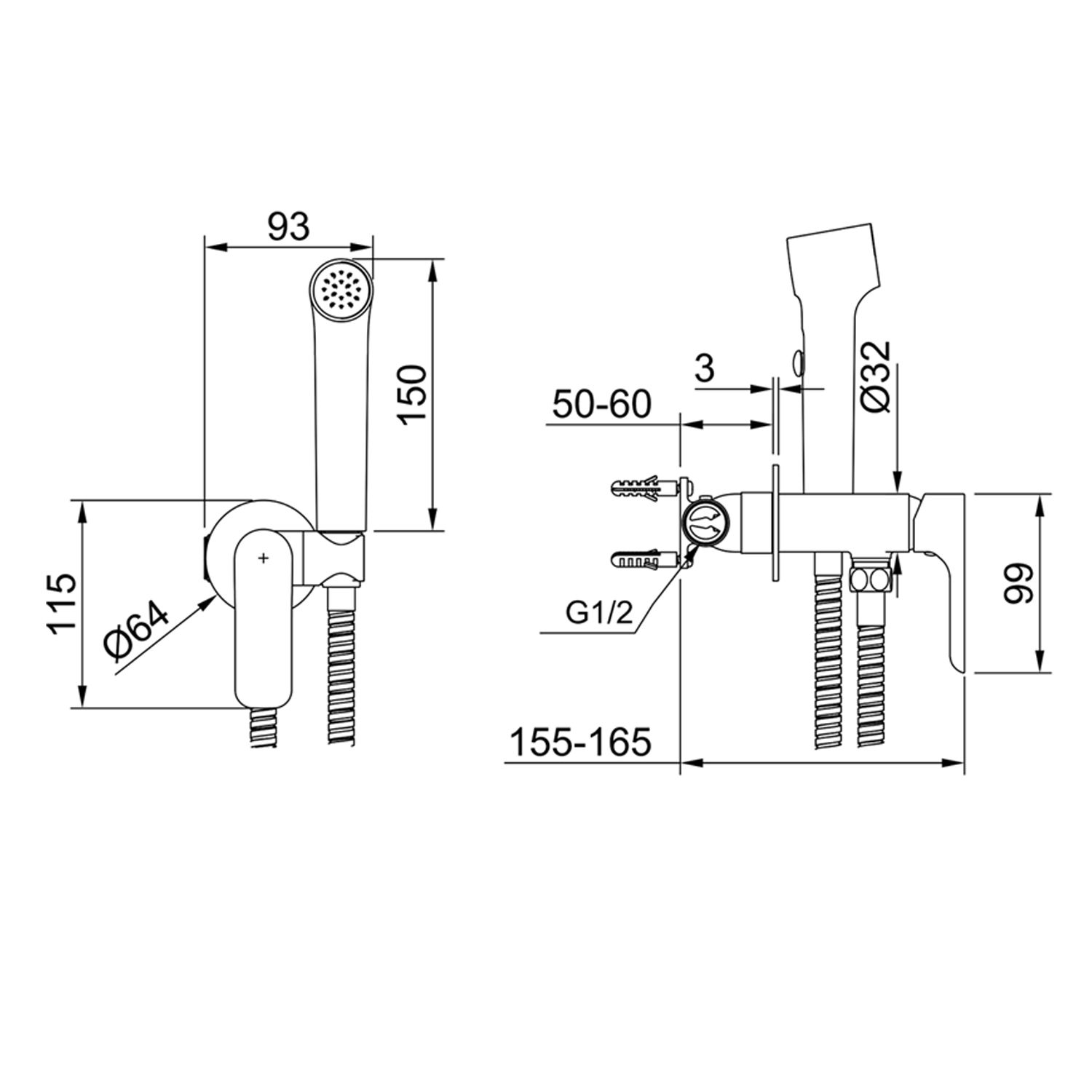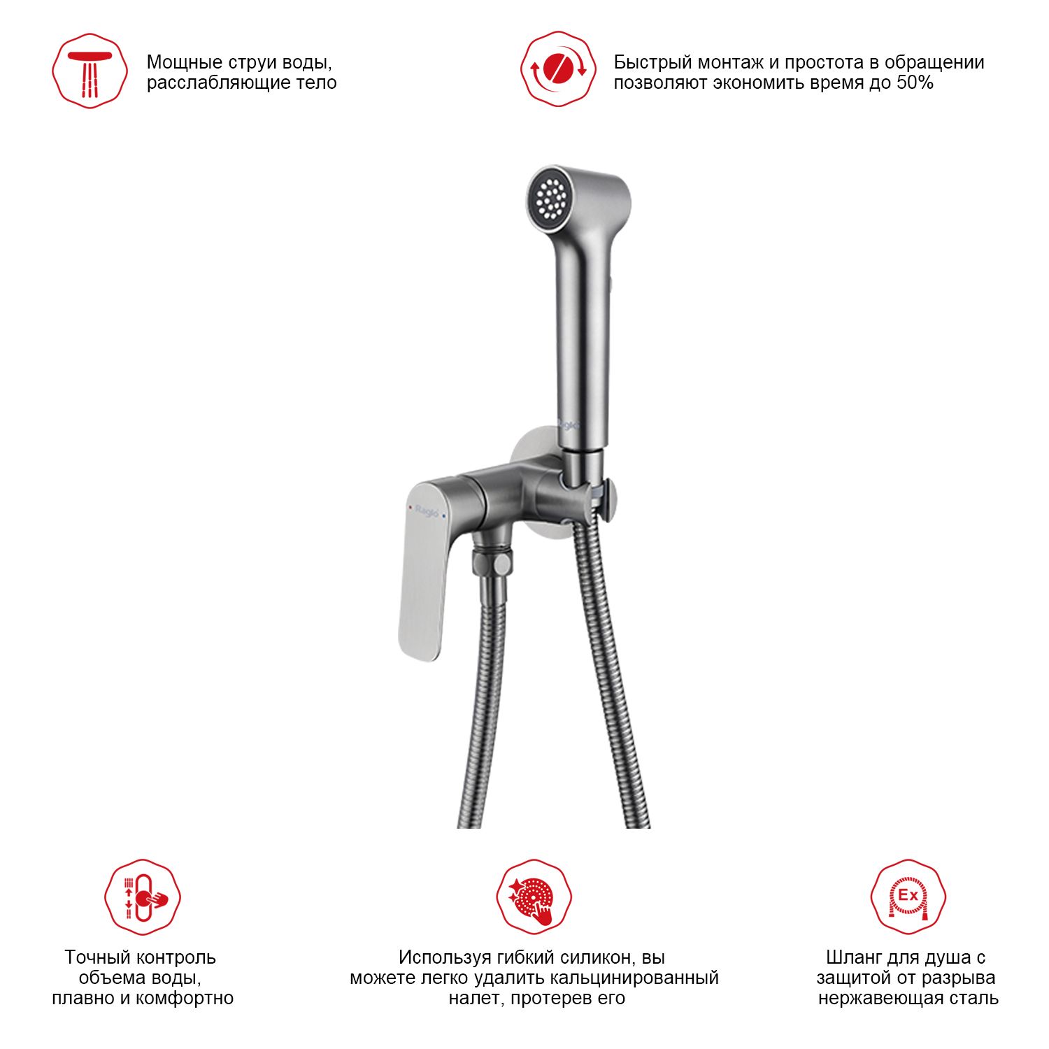 Смеситель с гигиеническим душем встраиваемый Raglo графит R03.52.09