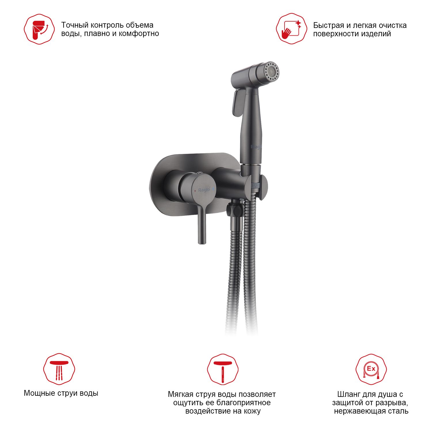 Смеситель с гигиеническим душем встраиваемый Raglo графит R20.52.09