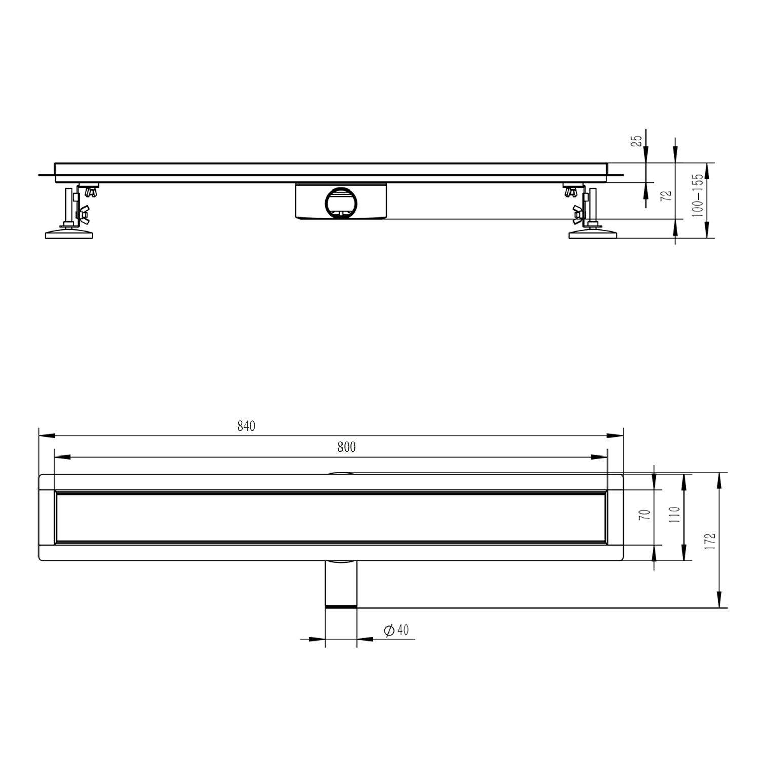 Трап для душа 70*800мм Raglo оружейная сталь R652.80.09