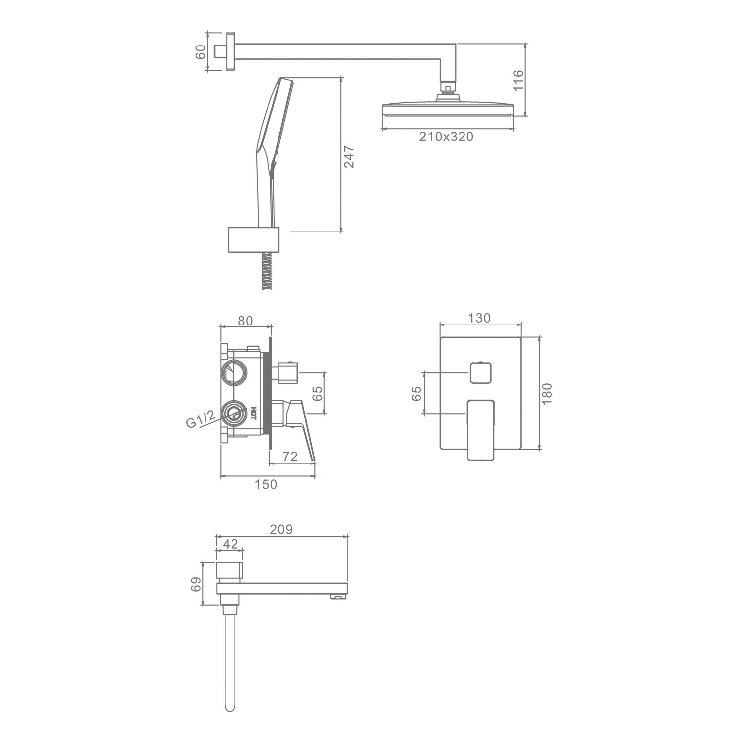 Встраиваемый смеситель для ванны с 3-функциями Raglo черный R30.27.06