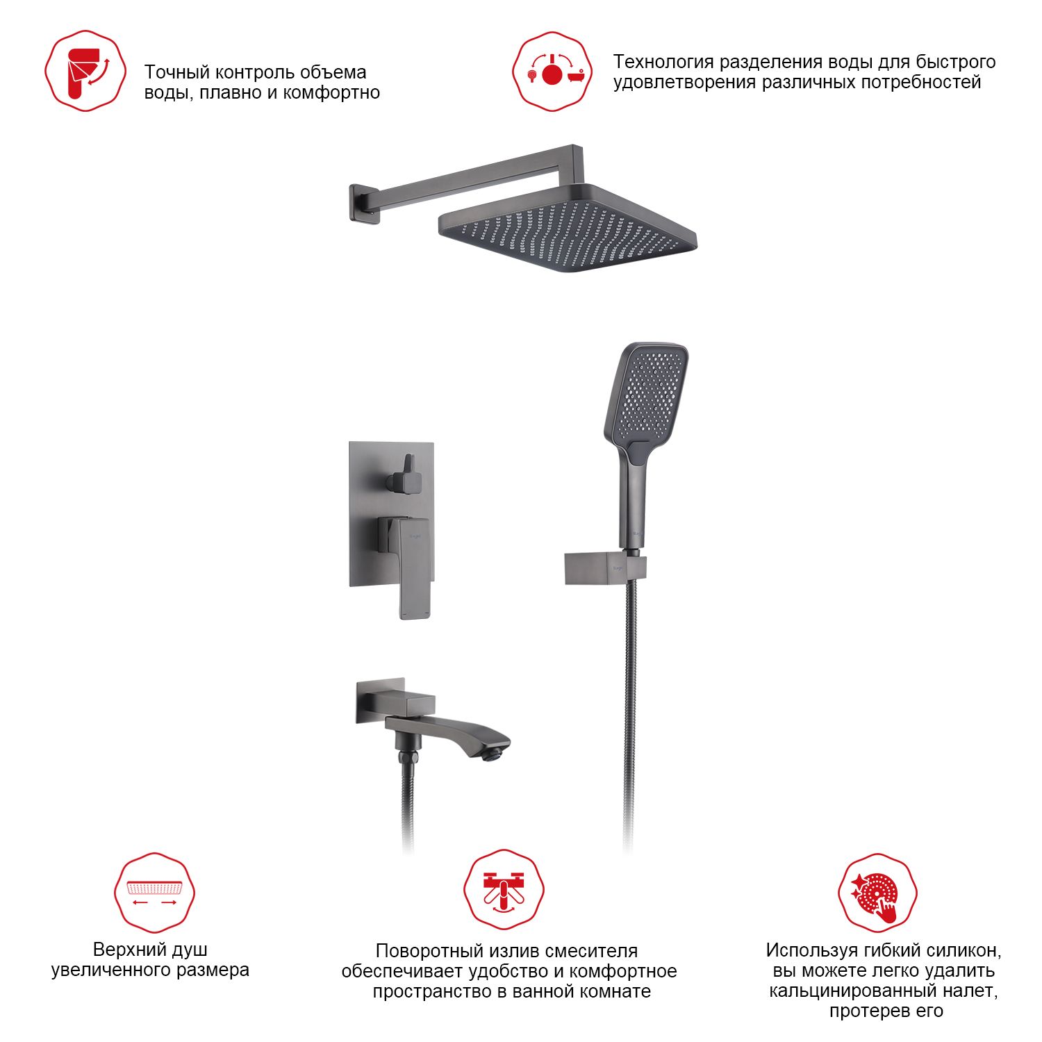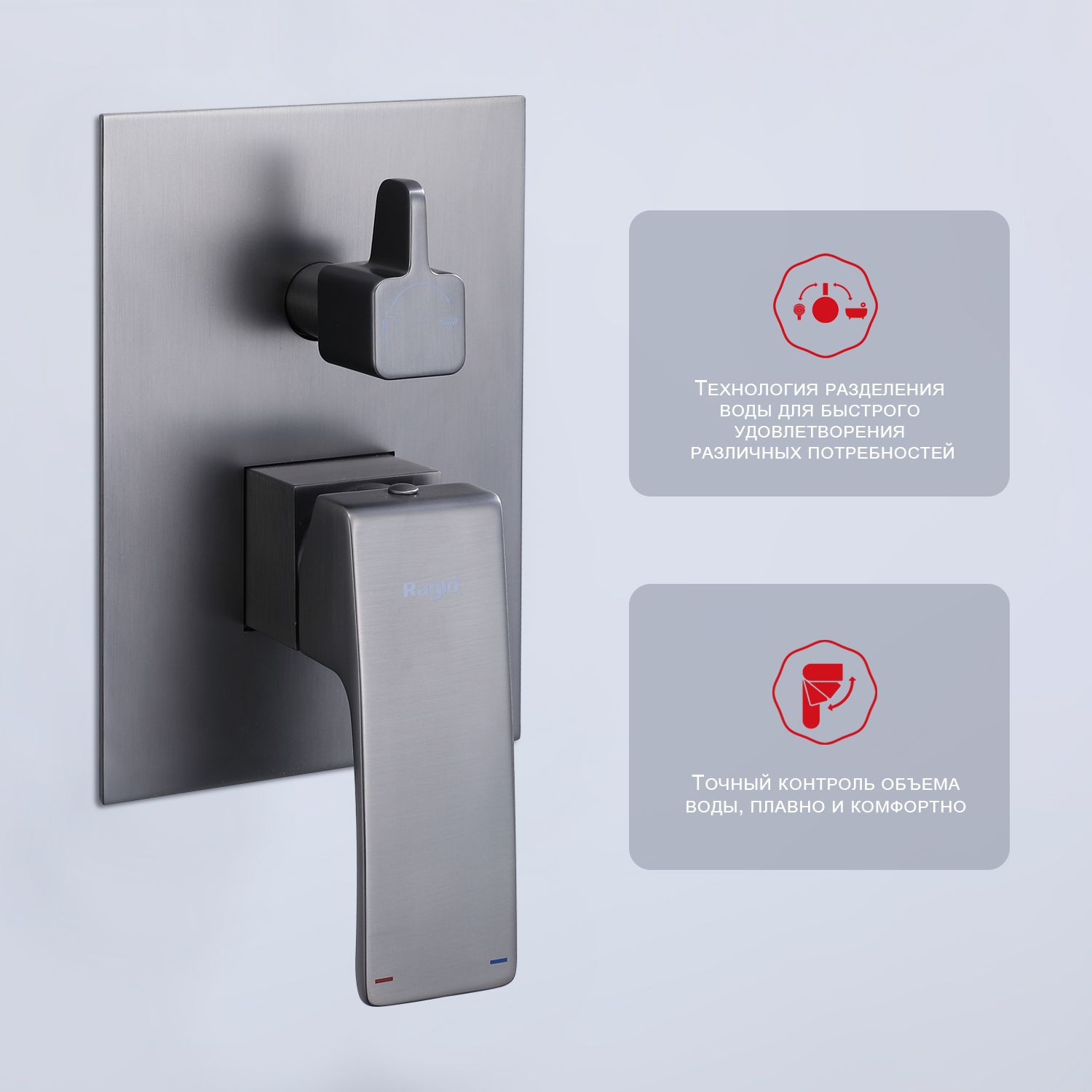 Встраиваемый смеситель для ванны с 3-функциями Raglo оружейная сталь R01.27.09