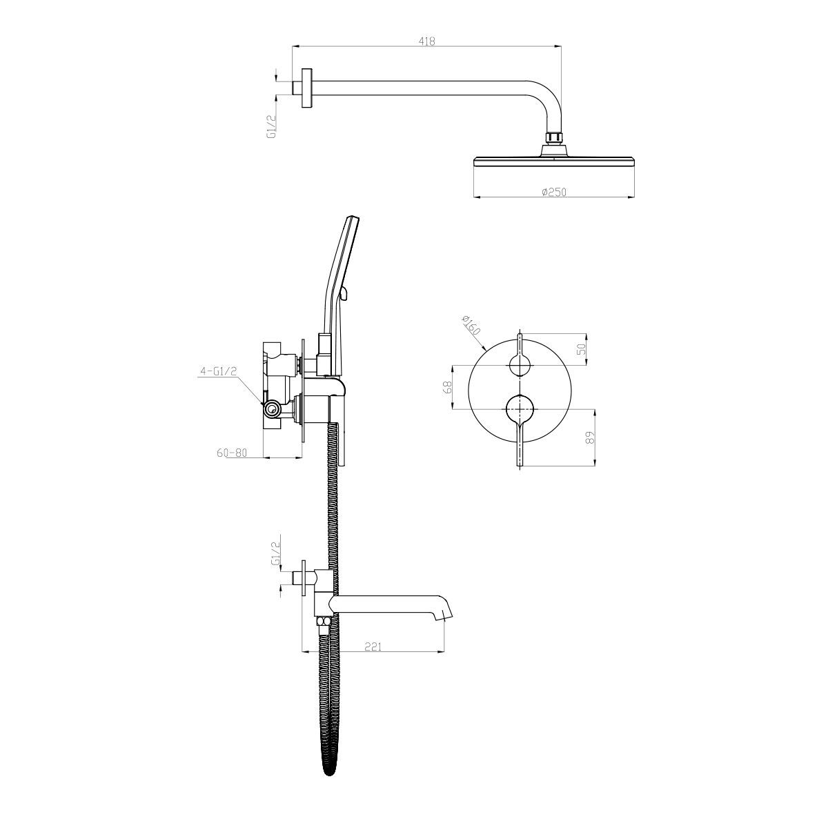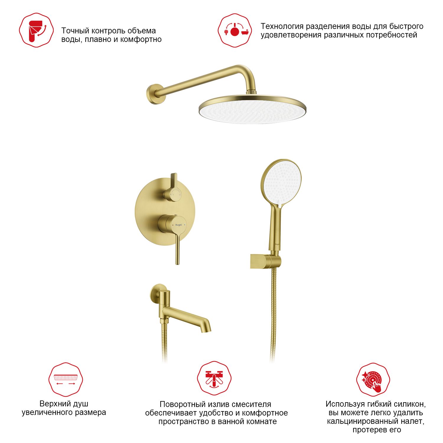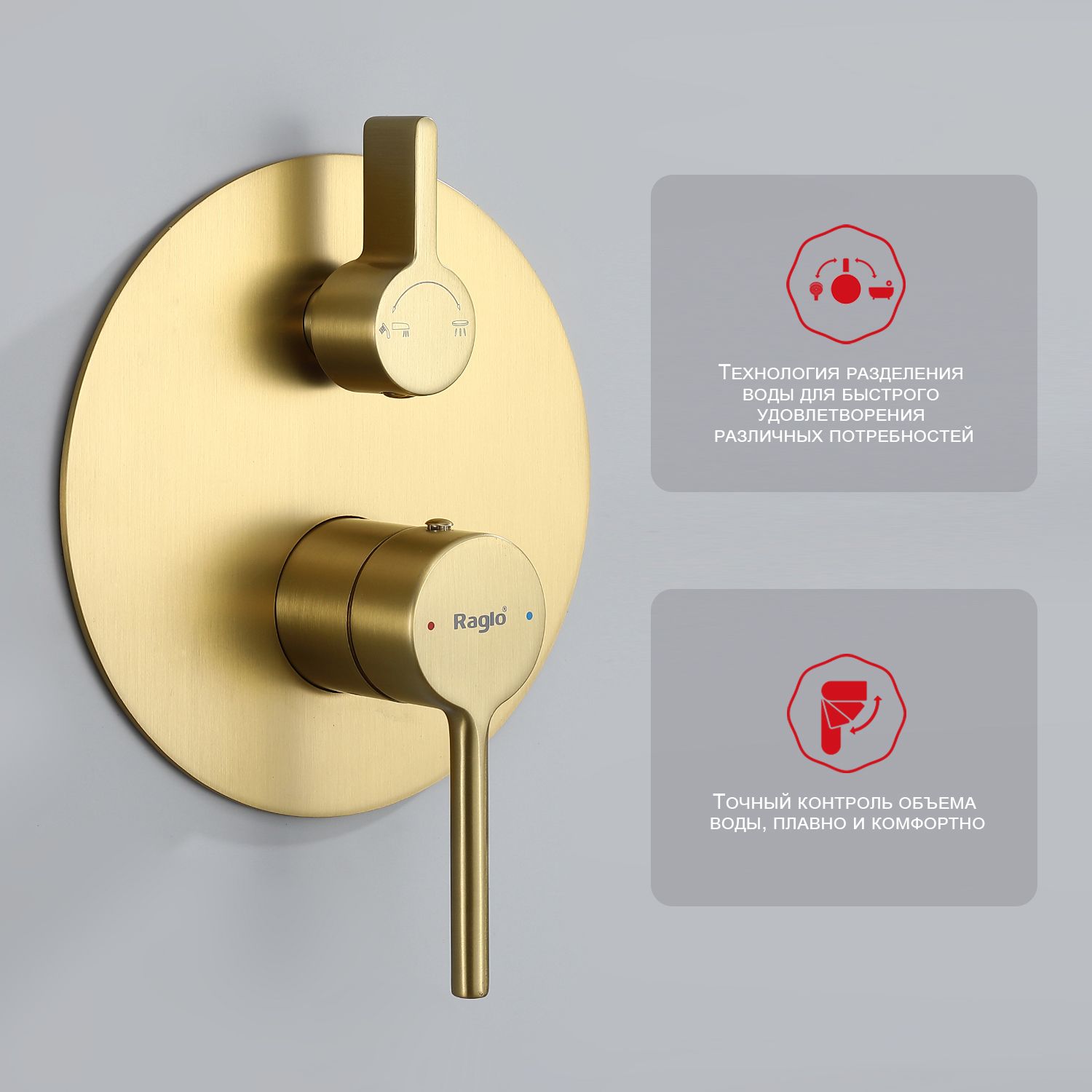 Встраиваемый смеситель для ванны с 3-функциями Raglo сатин золотой R20.27.03