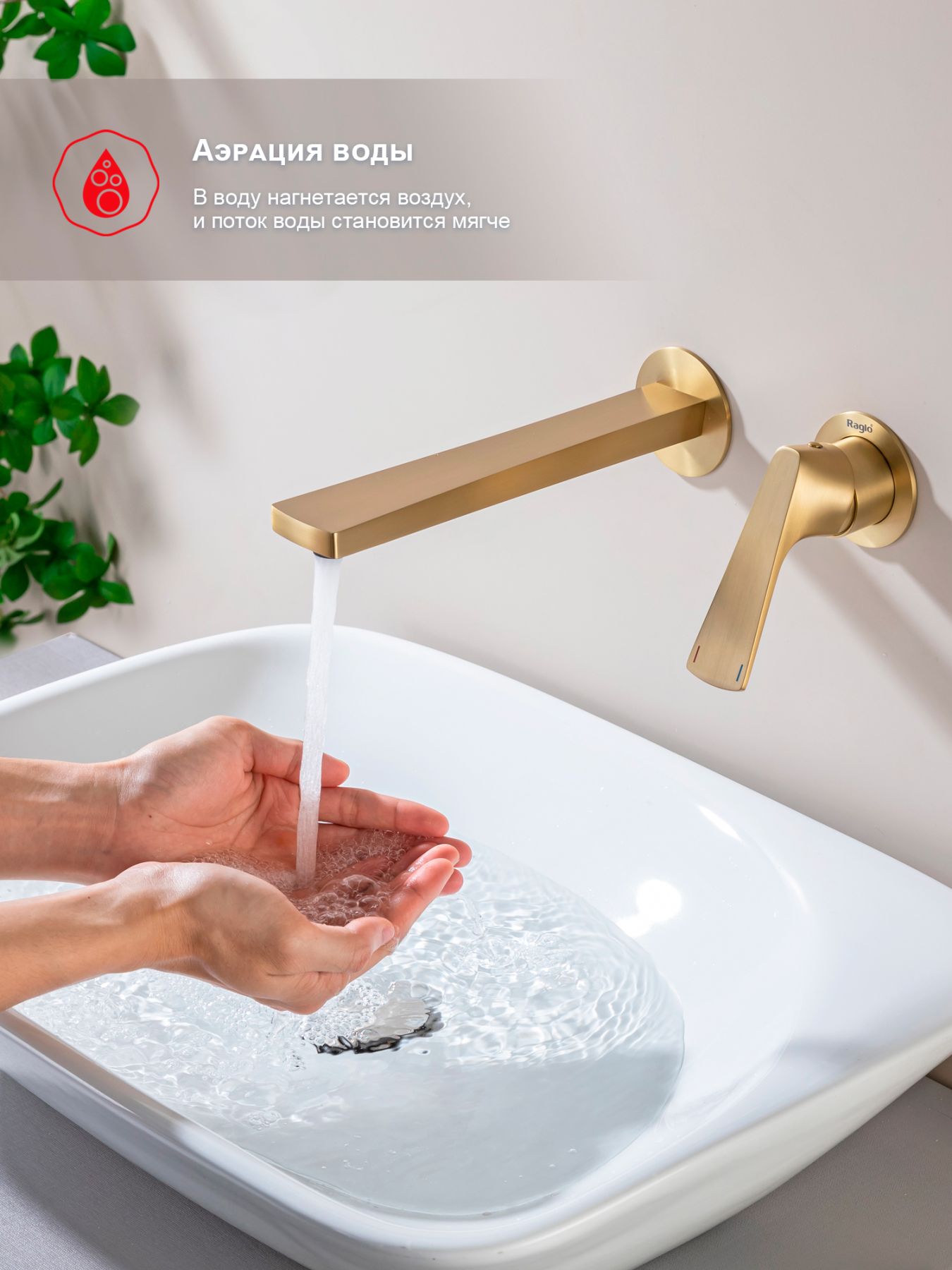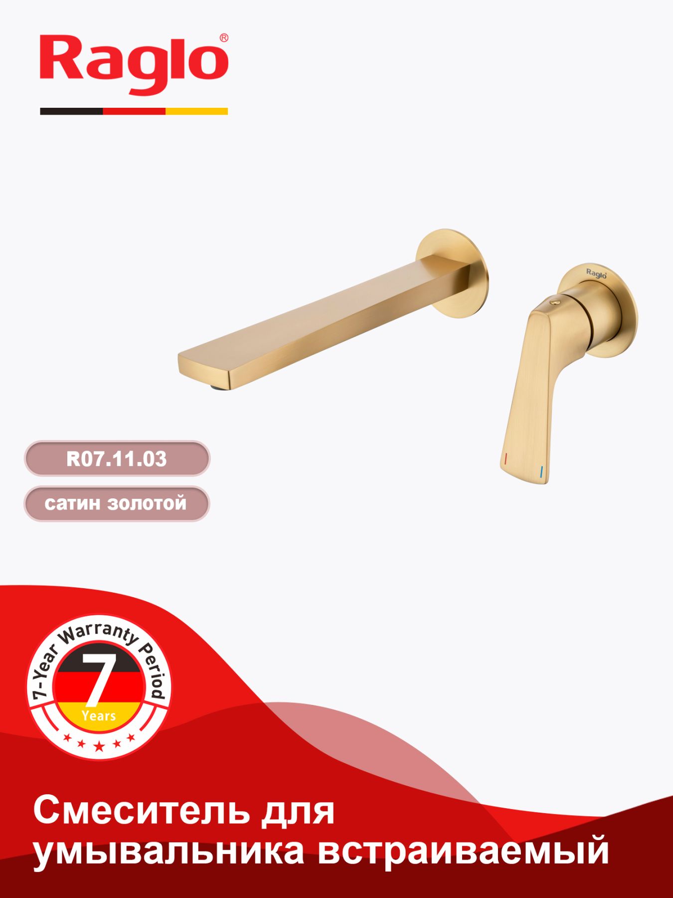 Встраиваемый смеситель для раковины Raglo золотой сатин R07.11.03